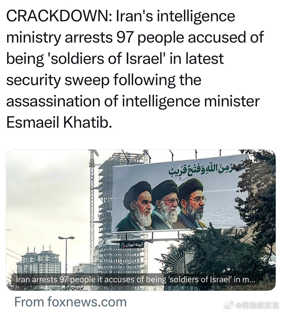 美以今天继续轰炸伊朗军事设施以色列没有再针对伊朗能源设施伊朗情报部门在抓捕涉嫌泄