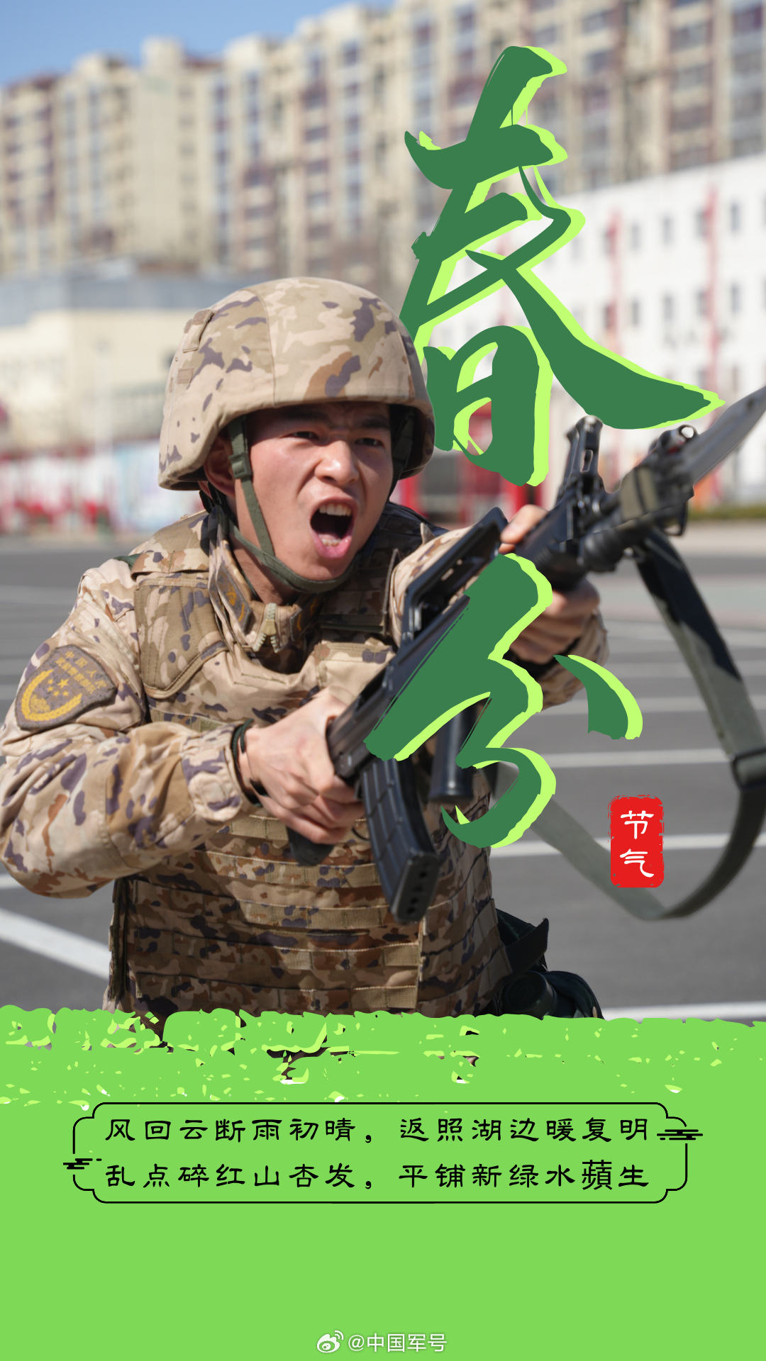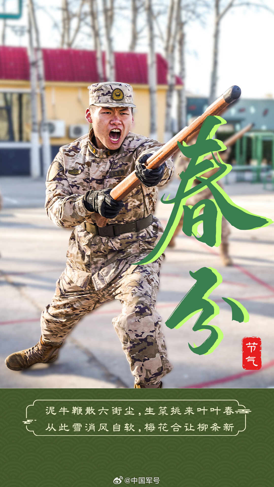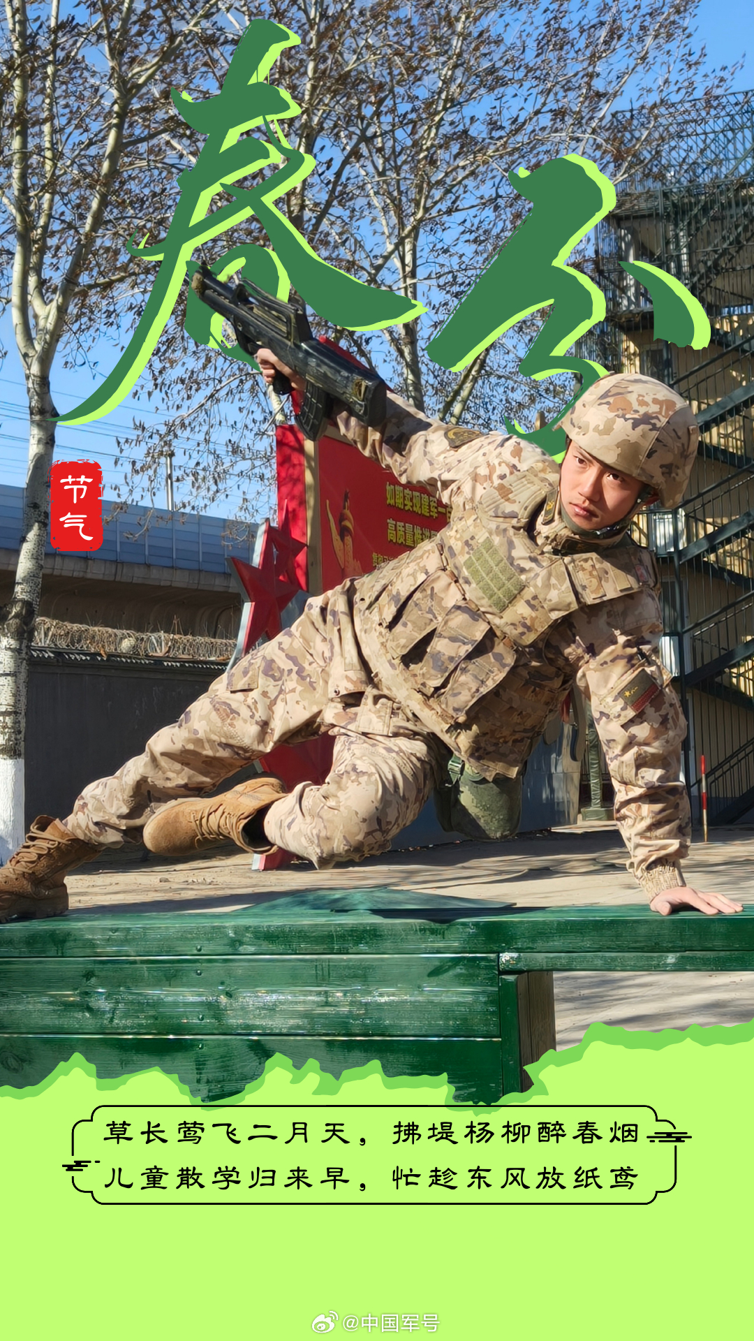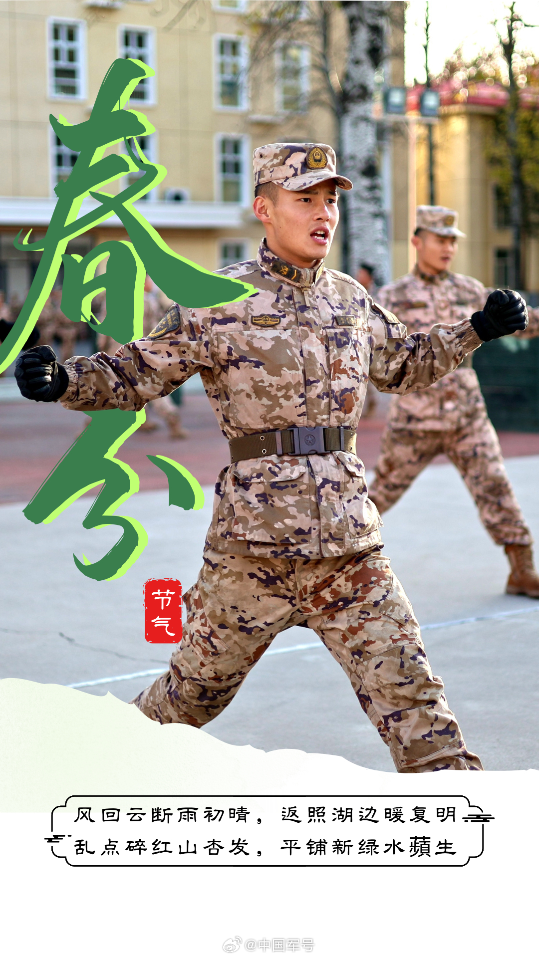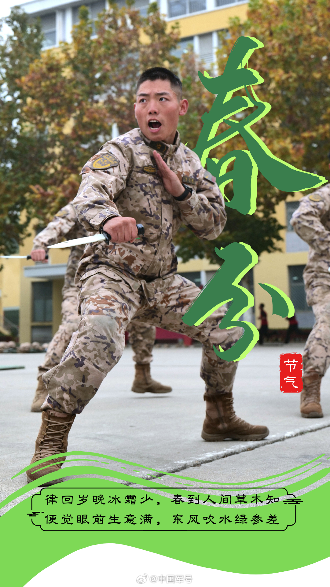 【今日春分 | 春分练兵海报上新】春分至,万物竞发;龙抬头,战鼓催征。武警官兵每一次挥拳破风,都是对春天的捍卫;每一滴汗水凝光,都见证使命的荣光。龙抬头的昂扬,春分的生机,都化作他们冲锋向前的坚定步履,守护山河无恙的铁血担当。当春分巧遇龙抬头(王凯生 陈宇 魏威 武文峰 马博文 戎宇杰 赵明洋 黄守铭)