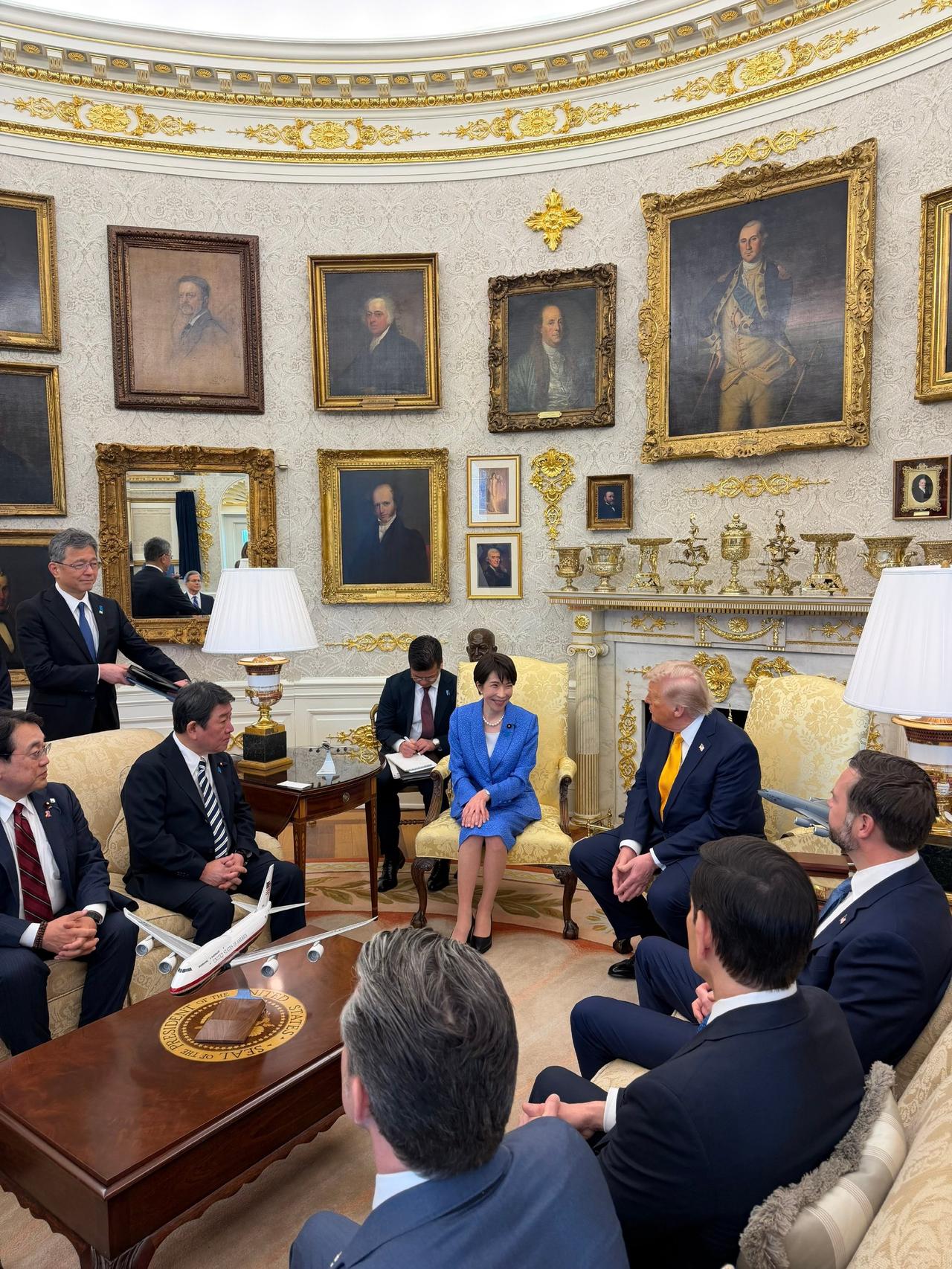 老川身边这四大金刚,副总统、国务卿、战争部长、财政部长,都好能打,很厉害。身材都保持得不错。发量也都不错,没秃头谢顶。 尤其是这届的战争部长赫格塞斯,比以往几届都高调,敢说也敢打,楞是把战争部长这个职位做成了网红,他骂起主流媒体来毫不留情。 今天日美会晤,看到赫格塞斯的袜子和皮鞋了吗?每次公众场合他都穿着国旗袜子和与众不同的棕色皮鞋,好亮眼。