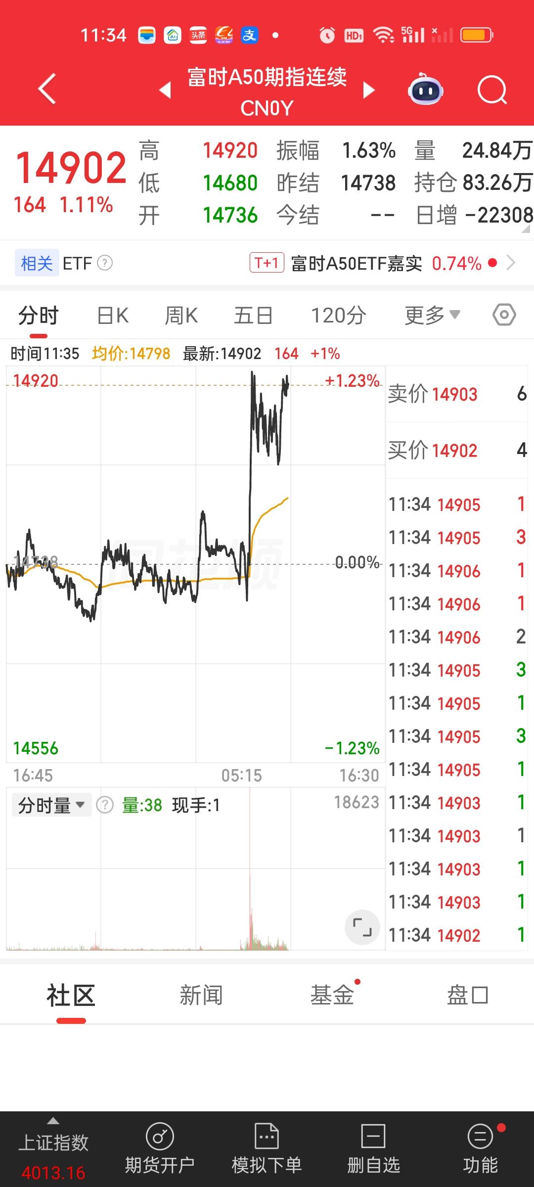 中午收盘了,事实证明只要想拉,拉起来就是分分钟的事。上证指数5分钟就拉了30个点