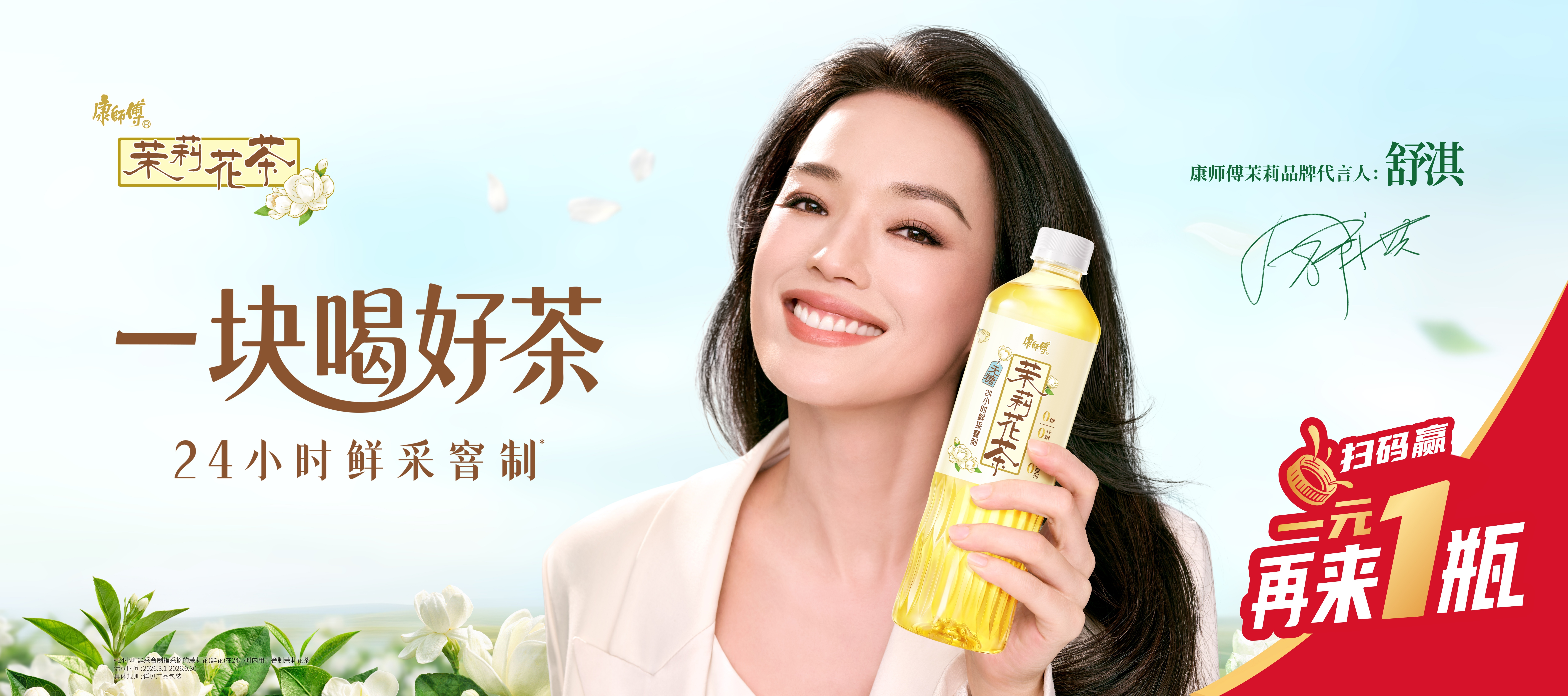 大事件!舒淇正式官宣成为康师傅茉莉品牌代言人啦 。这次不仅气质营业,还给大家送来清香福利。康师傅茉莉花茶严选好料,24小时鲜采窨制 ,每一口清香如初绽 。而且还0糖0代糖0卡路里0防腐剂0香精 ,主打一个健康无负担。快去线下店购买解锁一元再来1瓶的惊喜 !一块喝好茶,好茶~一块喝 !舒淇喊你一块喝好茶 康师傅茉莉 每一口清香如初绽网页链接