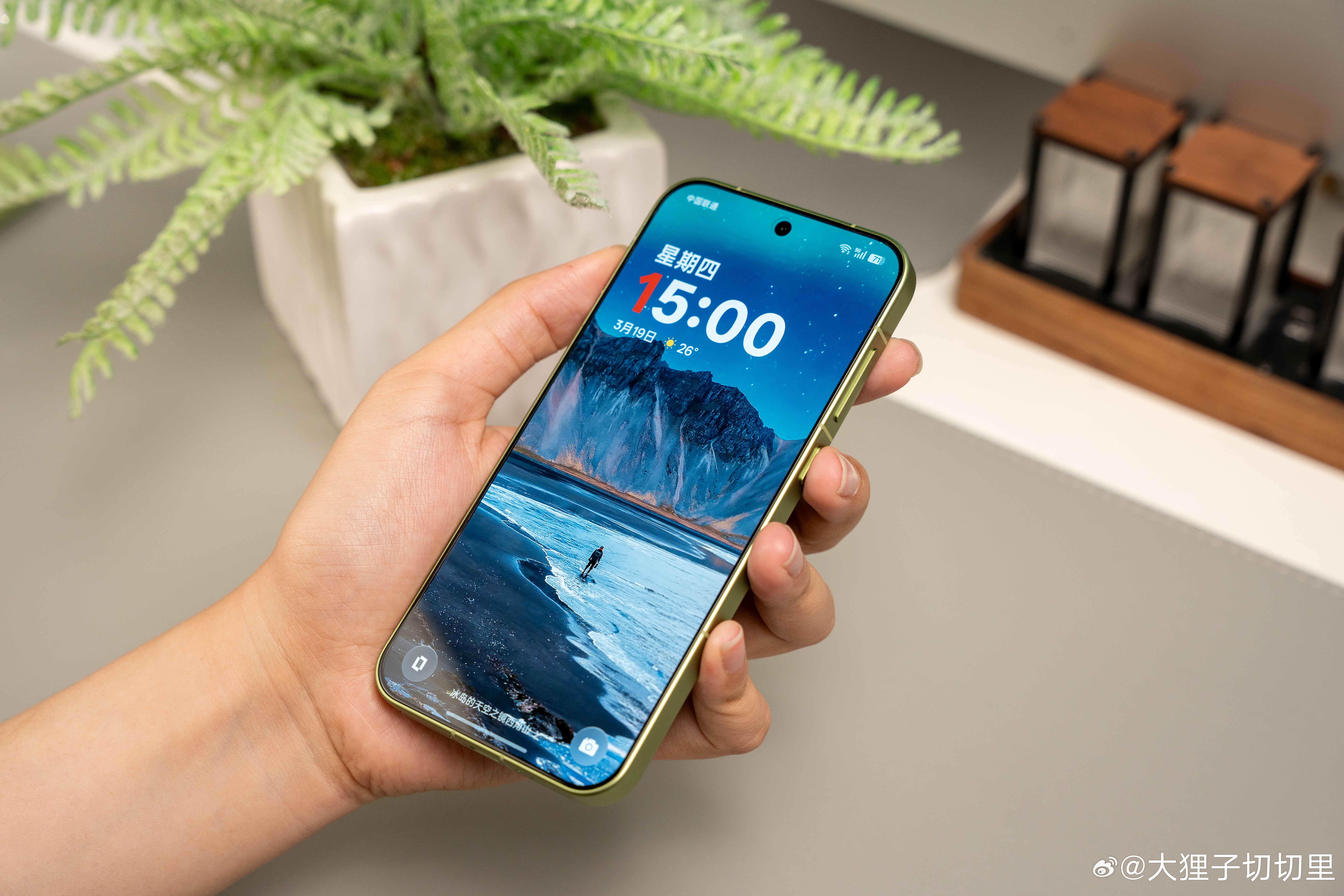 刚到手一块抹茶巧克力(bushi)!说真的,一加 15T 这个绿色,远看真的巨像一块抹茶巧克力,背面不是那种死板的纯色,细看感觉上面撒了一层淡淡的抹茶粉。中框是磨砂金属的,后盖摸起来手感巨舒服,还不沾指纹。6.32 英寸的小直屏,整机握在手里很趁手,质感也很不错!