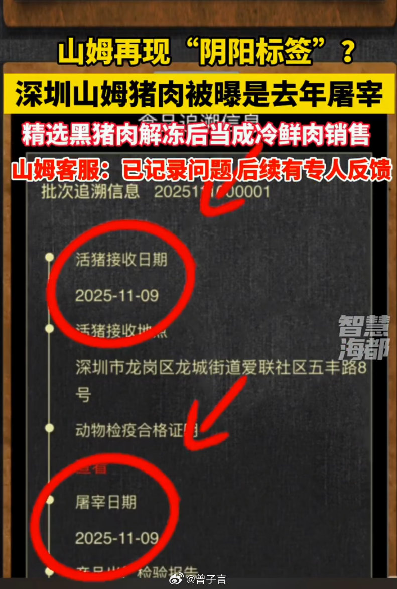 山姆被曝冷鲜猪肉是数月前屠宰的