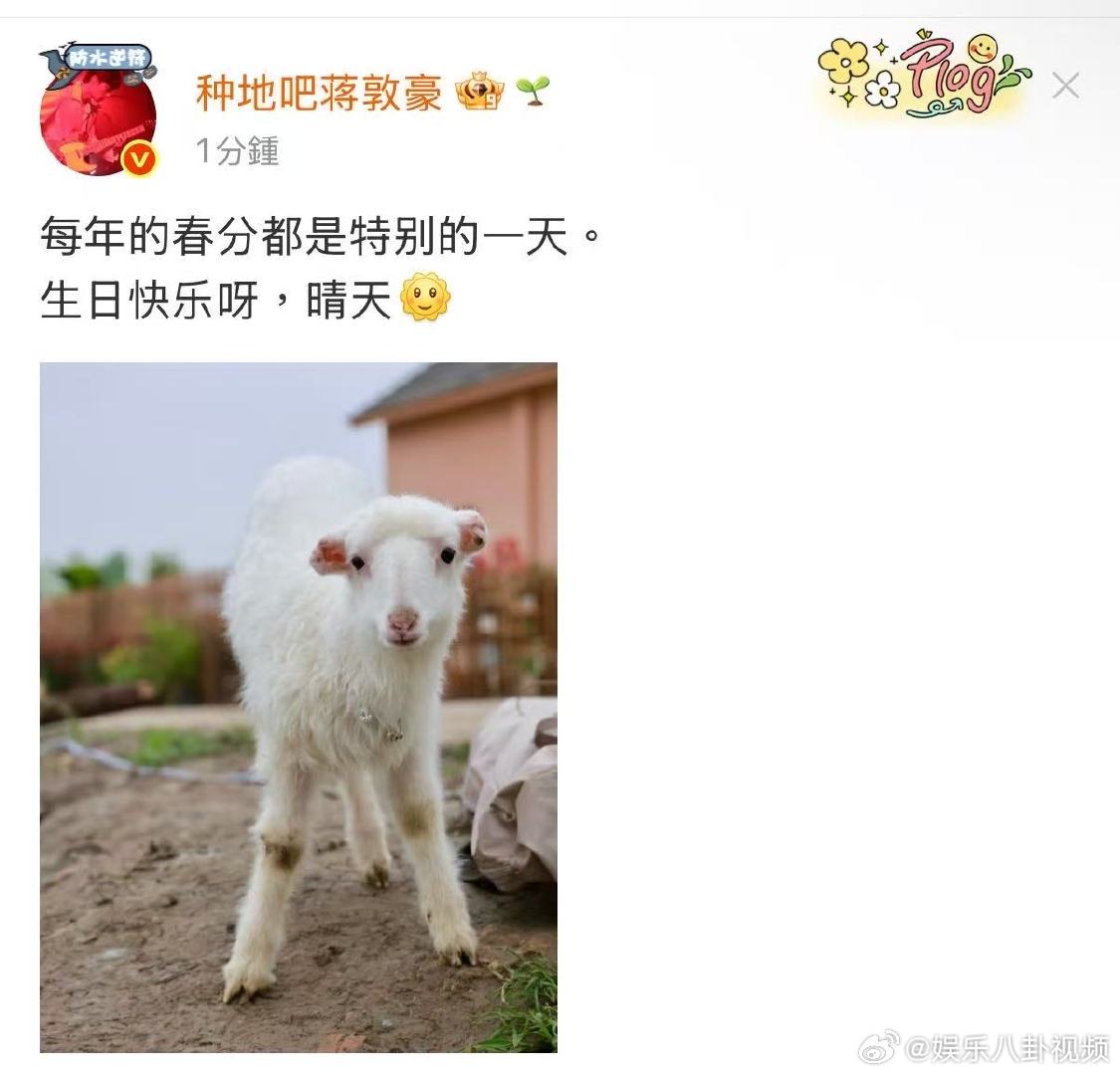 蒋敦豪生日快乐呀晴天蒋敦豪连续三年发文祝小羊晴天生日快乐,每个春分都是特别的种地吧
