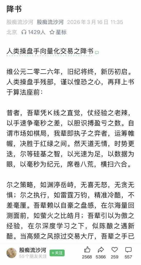 今日股市,一言难尽。 股友说,午间眼看大盘已是飘红,谁知午后却一泄千里。 这一定又是量化交易搞的鬼! 几天来,不少昔日的游资大佬都高叫,向量化交易投降认输。 他们都认输了,何况我们小散!