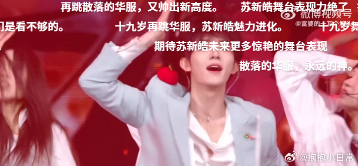 苏新皓的19岁成长分享会苏新皓再跳散落的华服 哇哦!苏新皓19岁成长分享会重现《散落的华服》,这简直是粉丝的福音!现在的他气场完全进化,又欲又撩,每个动作都直击我心,舞台表现力一年更比一年绝,爱了!