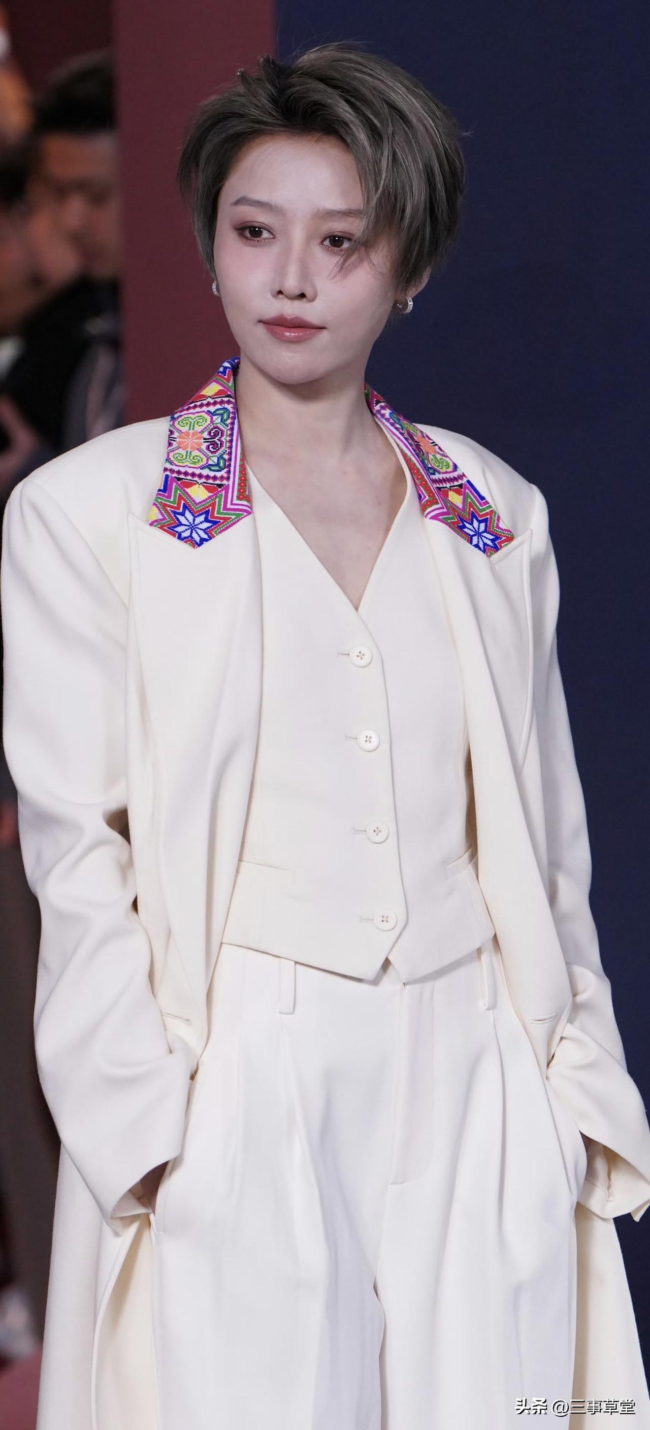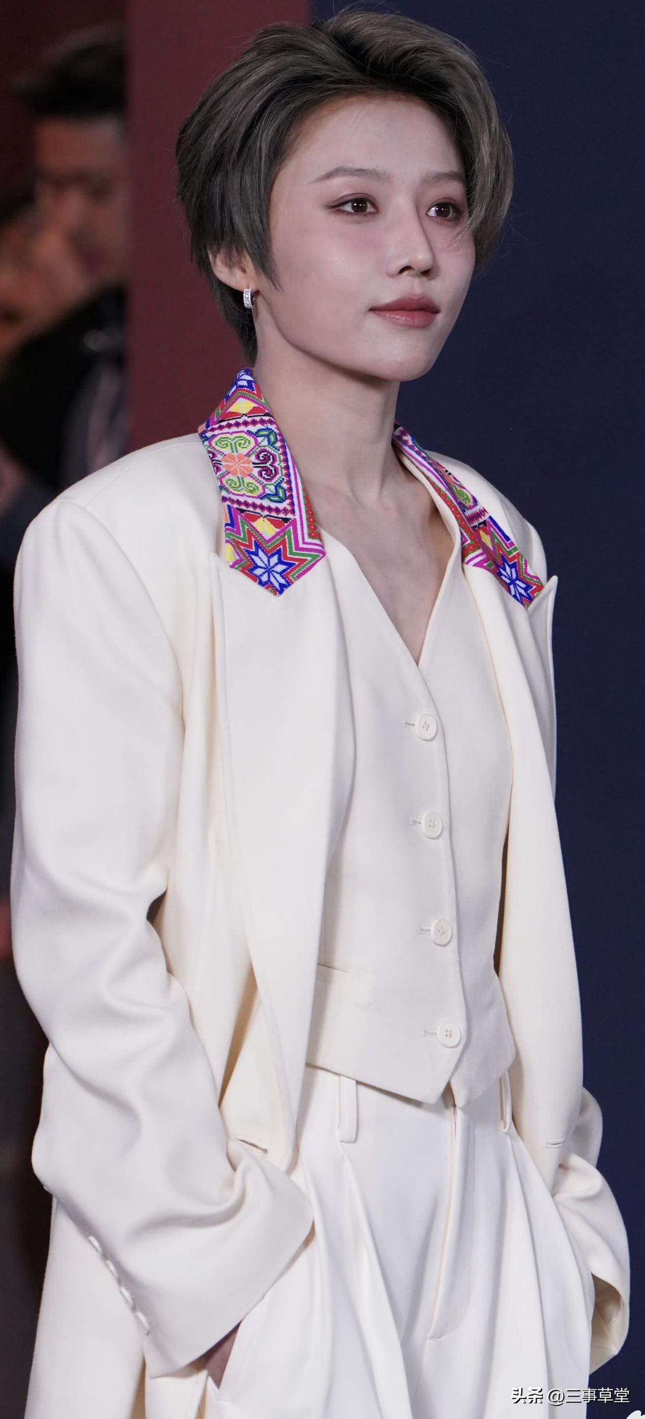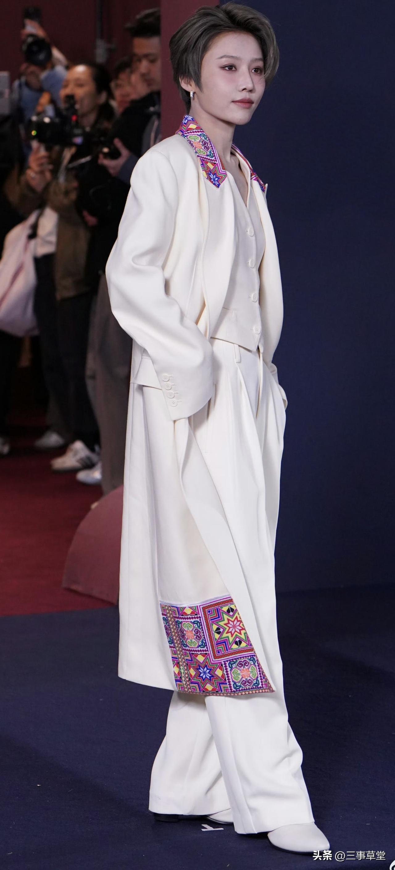 刘雨昕今日线下活动生图,白色苗绣套装好清爽!