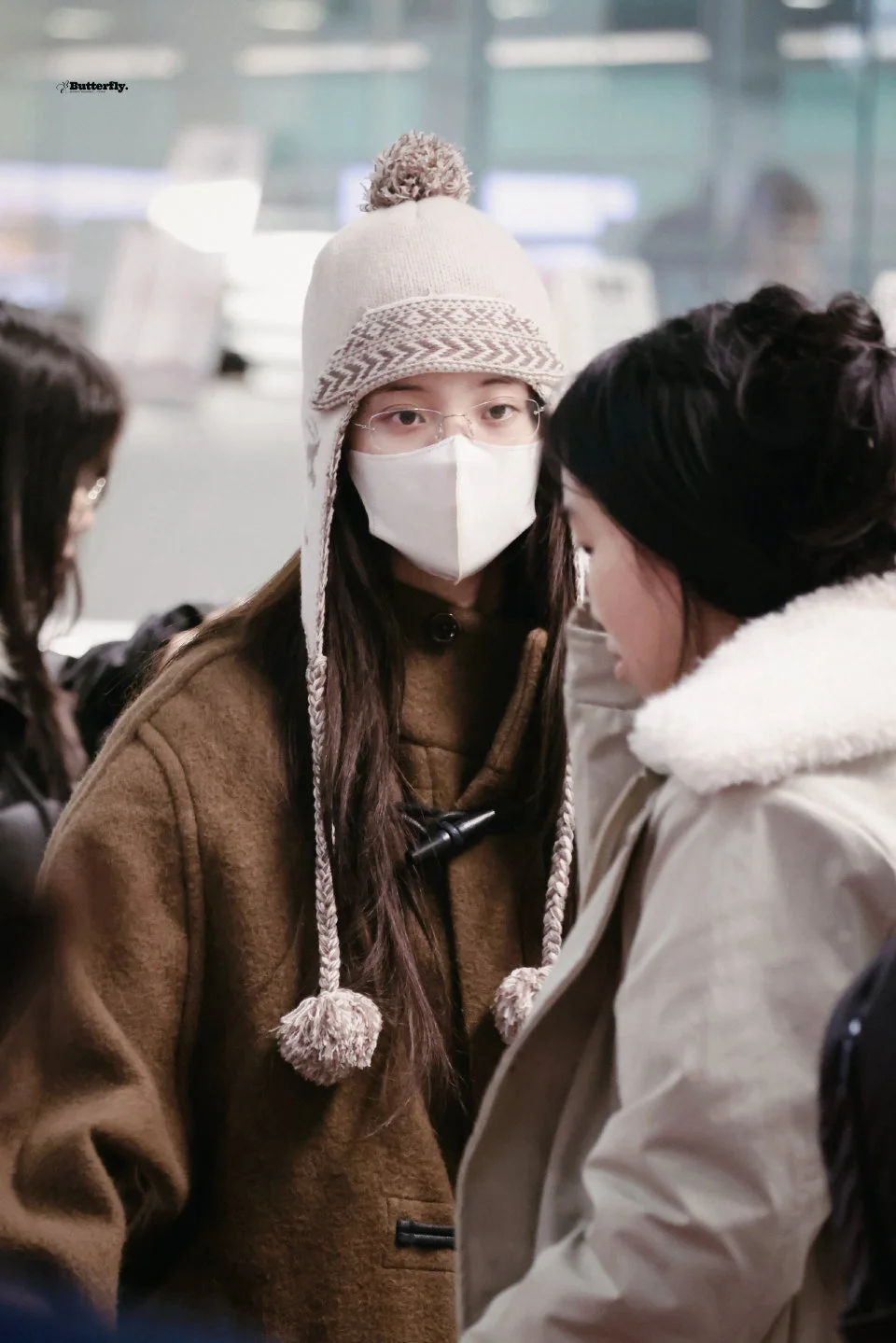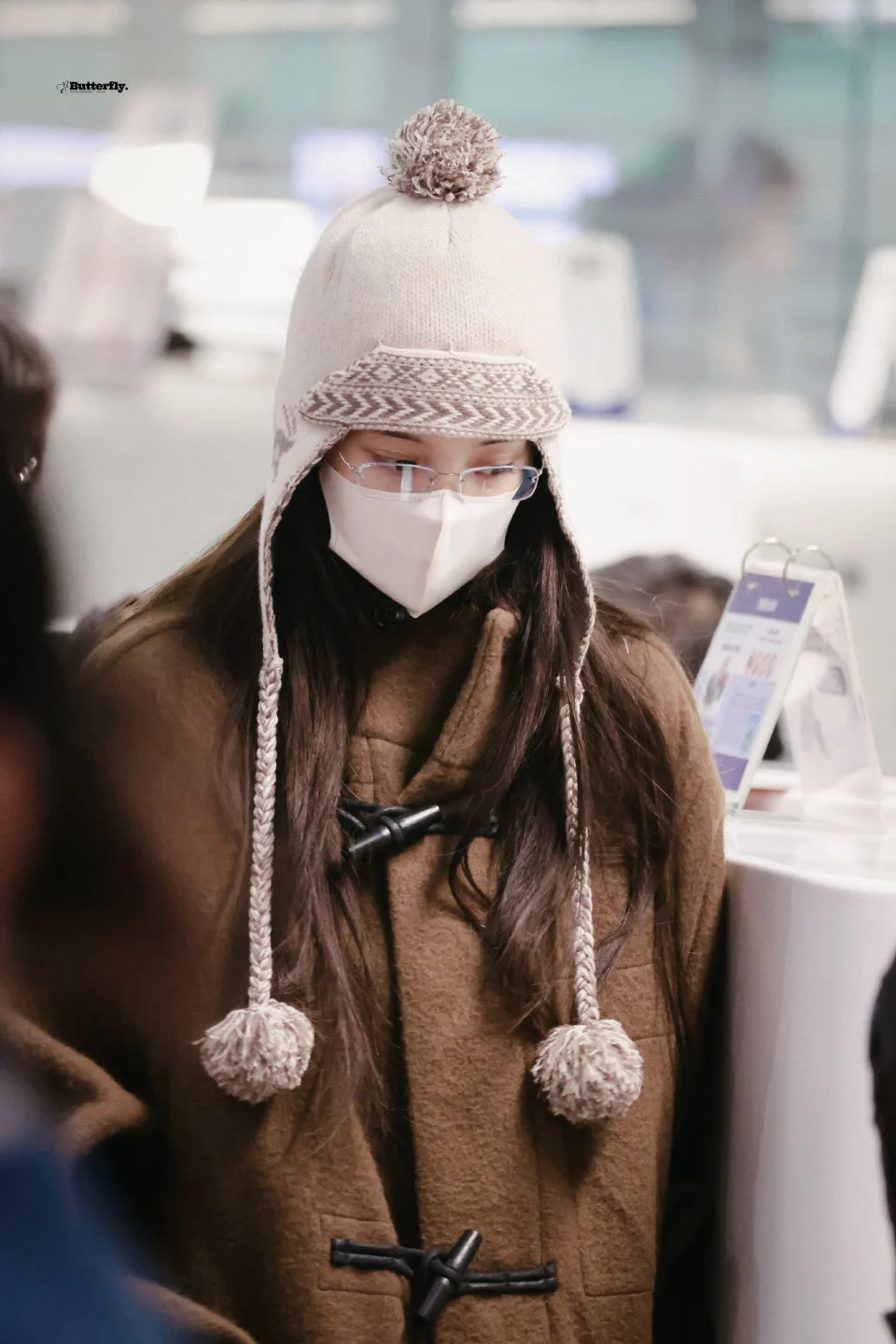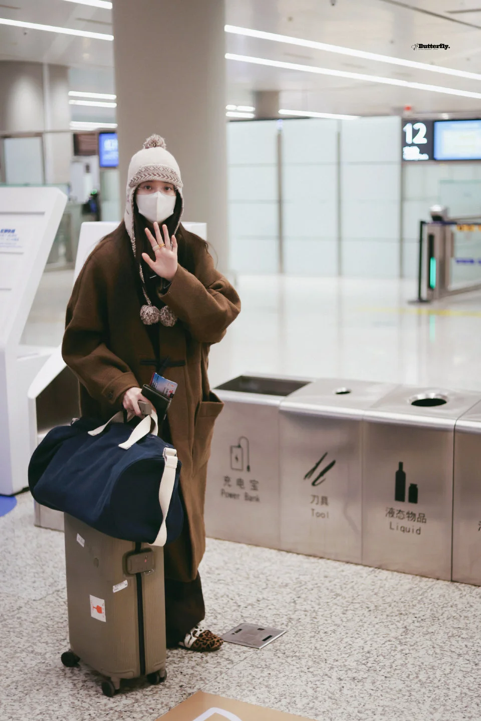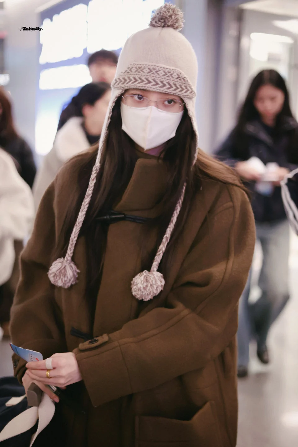 欧阳娜娜今日机场私服,长耳帽子搭配纽扣大衣,可可爱爱很女大的一身! 图片来源蝴蝶共振曲丨欧阳娜娜