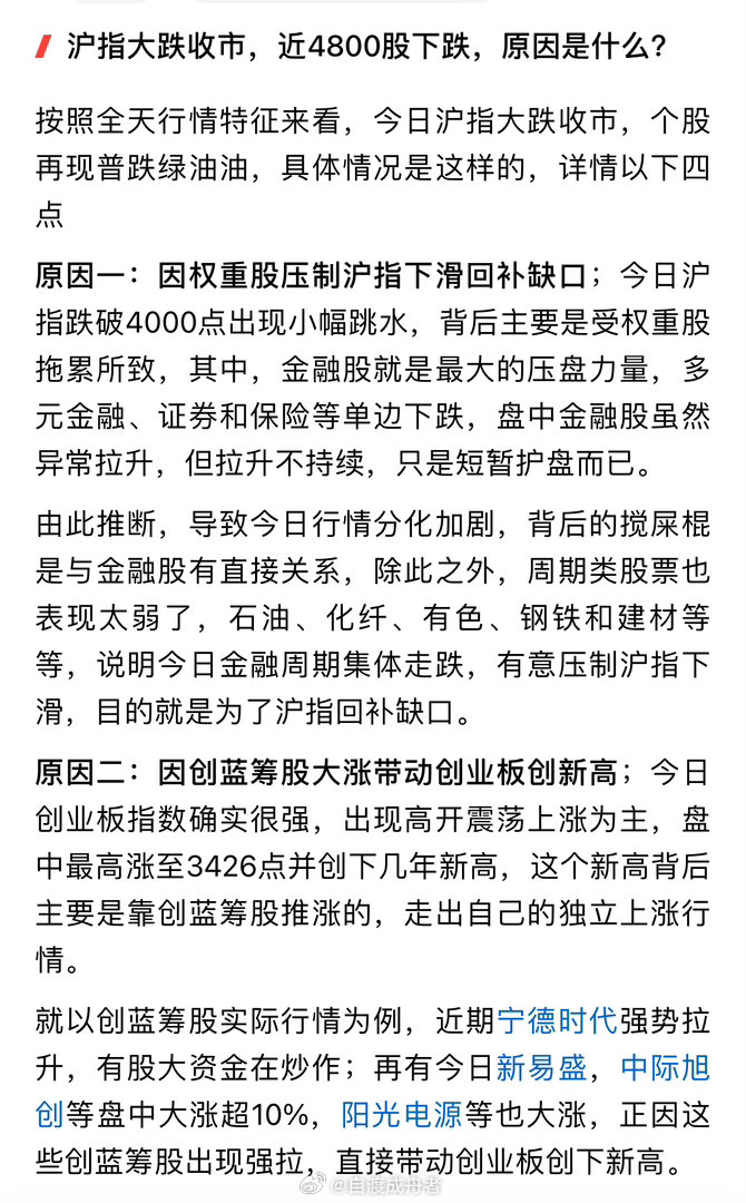 3月20日沪指大跌收市,近4800股下跌,今日大跌核心原因是什么?下周还会下跌?