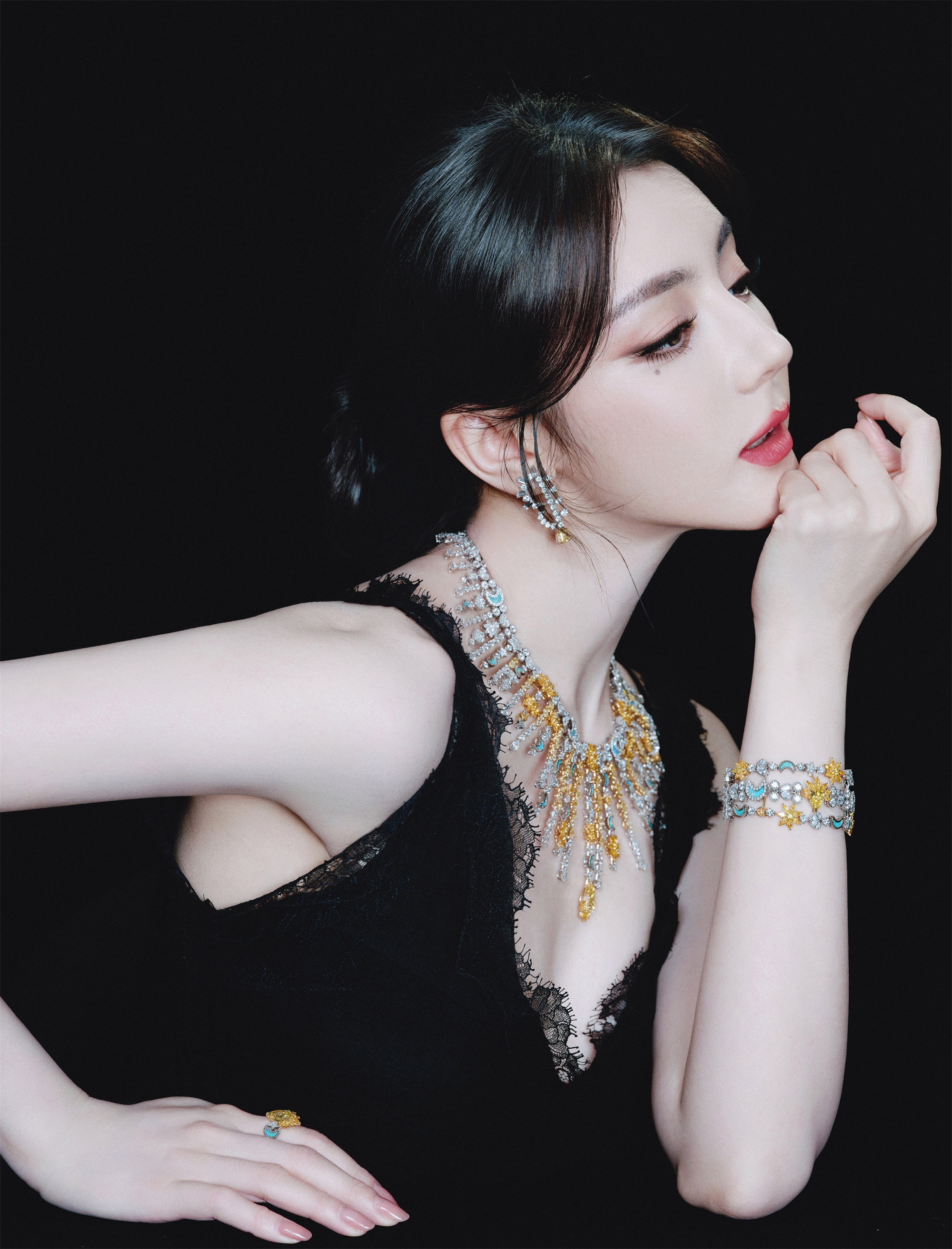迪丽热巴今日为DIOR活动 拍摄的这组图好美!以极简的黑色蕾丝礼服为底,完美衬托出她精致五官及佩戴的奢华珠宝。迪丽热巴迪奥活动直拍