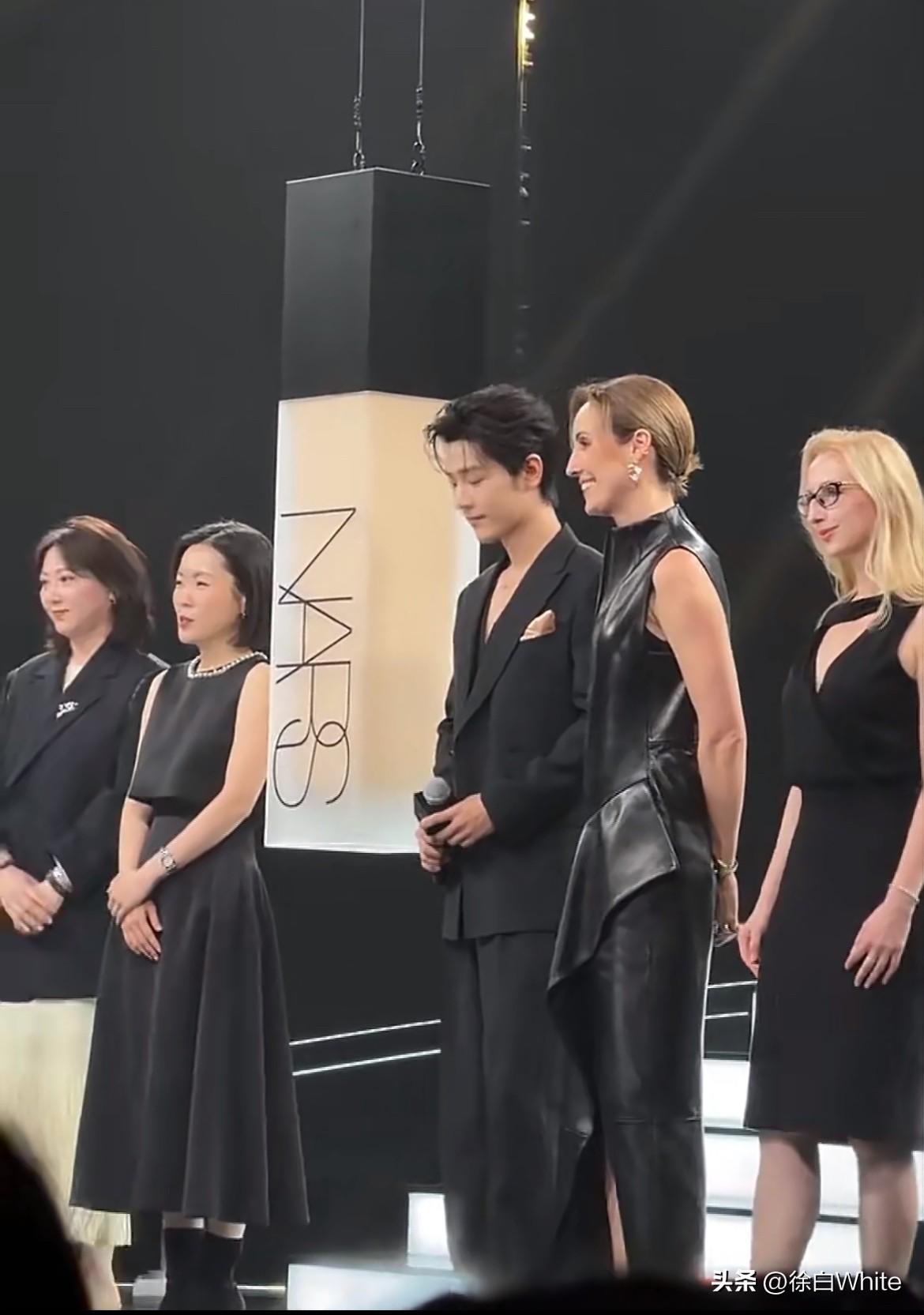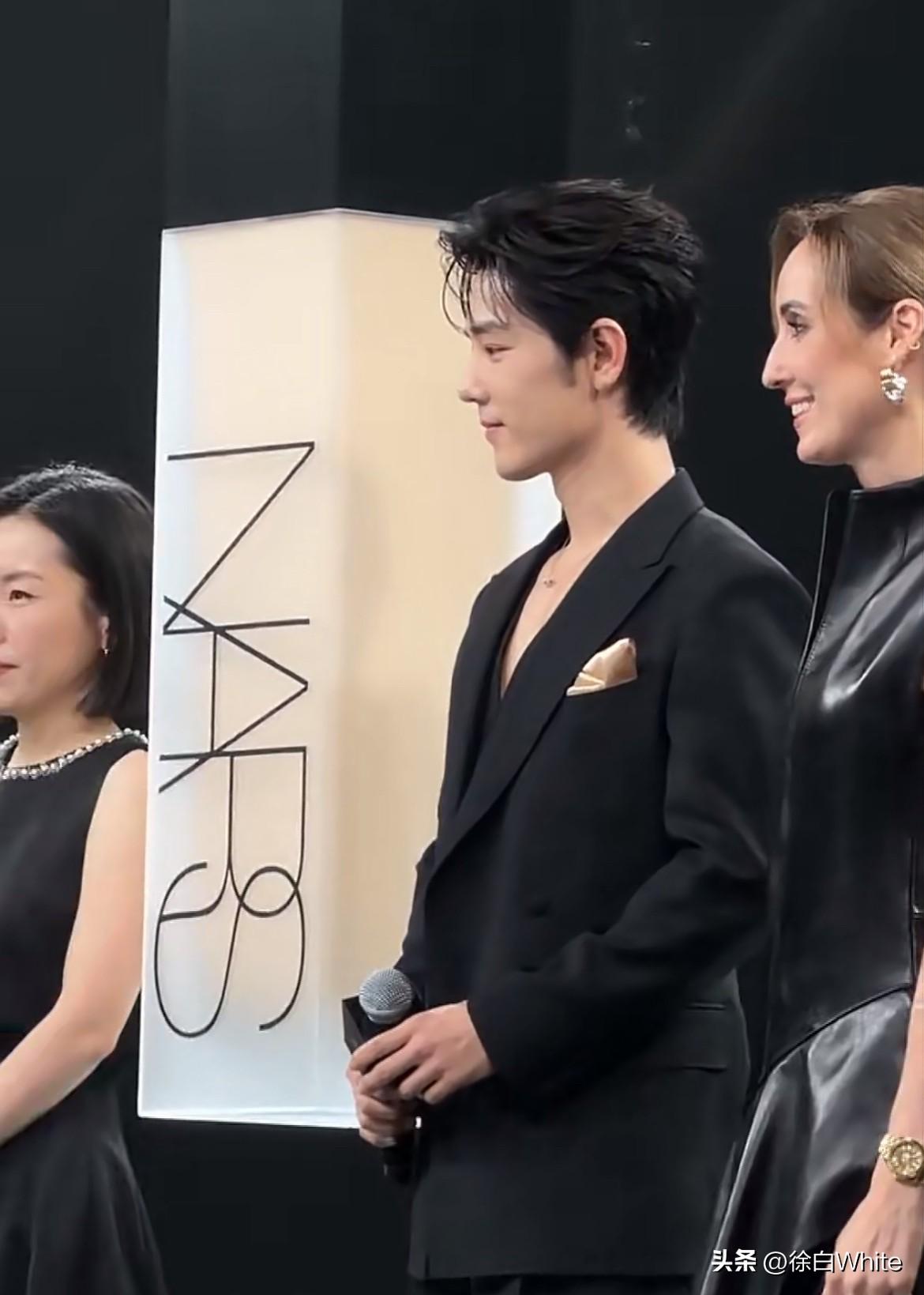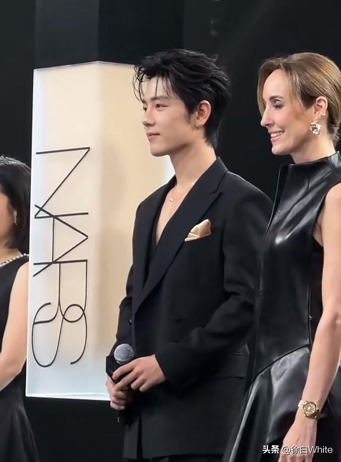 3月20日,肖战nars发布会合影太逗了 看今晚肖战在plus版粉底液旁边止不住的嘴角上扬,本人都觉得离谱的程度,一开始我还以为是远处的背景,后面看到有人隔着肖战站位才发现肖战旁边吊着一瓶plus版的粉底液,想出这点子的绝对是个营销人才! 重点产品突出了,重点全球代言人也突出了! 肖战真的很高,就算身边的女士穿了高跟鞋也比肖战略矮一些,其他人更不必说了! 人群中最亮的仔非肖战莫属。