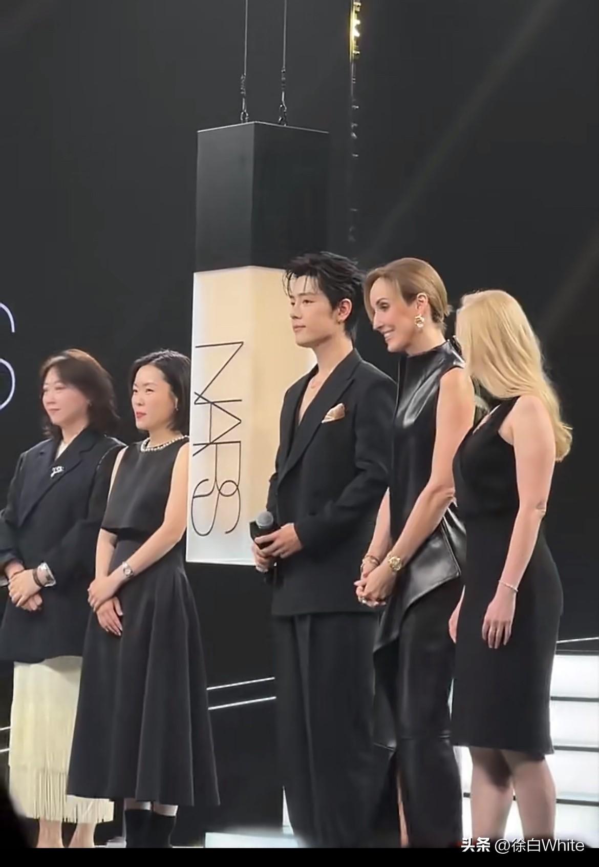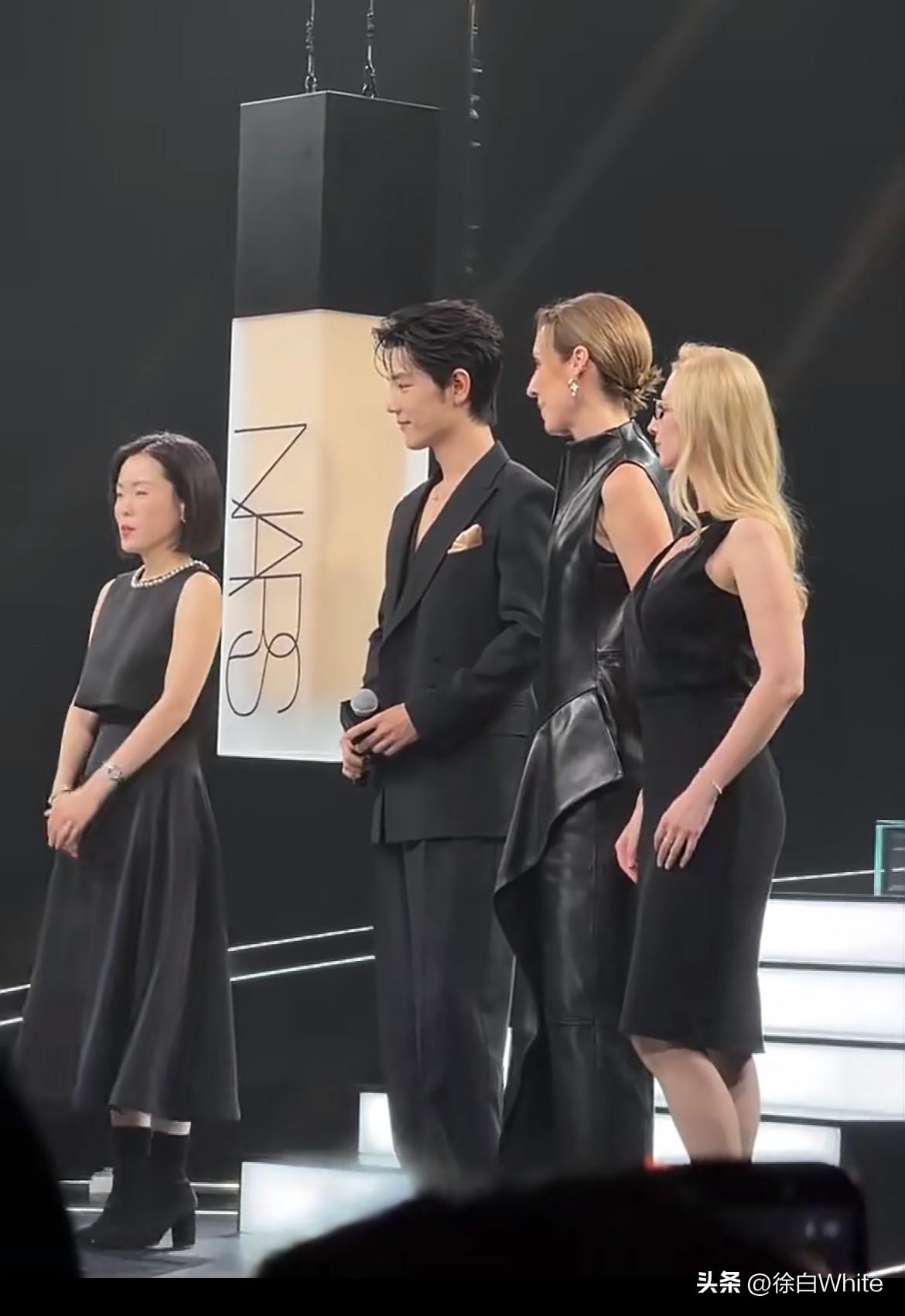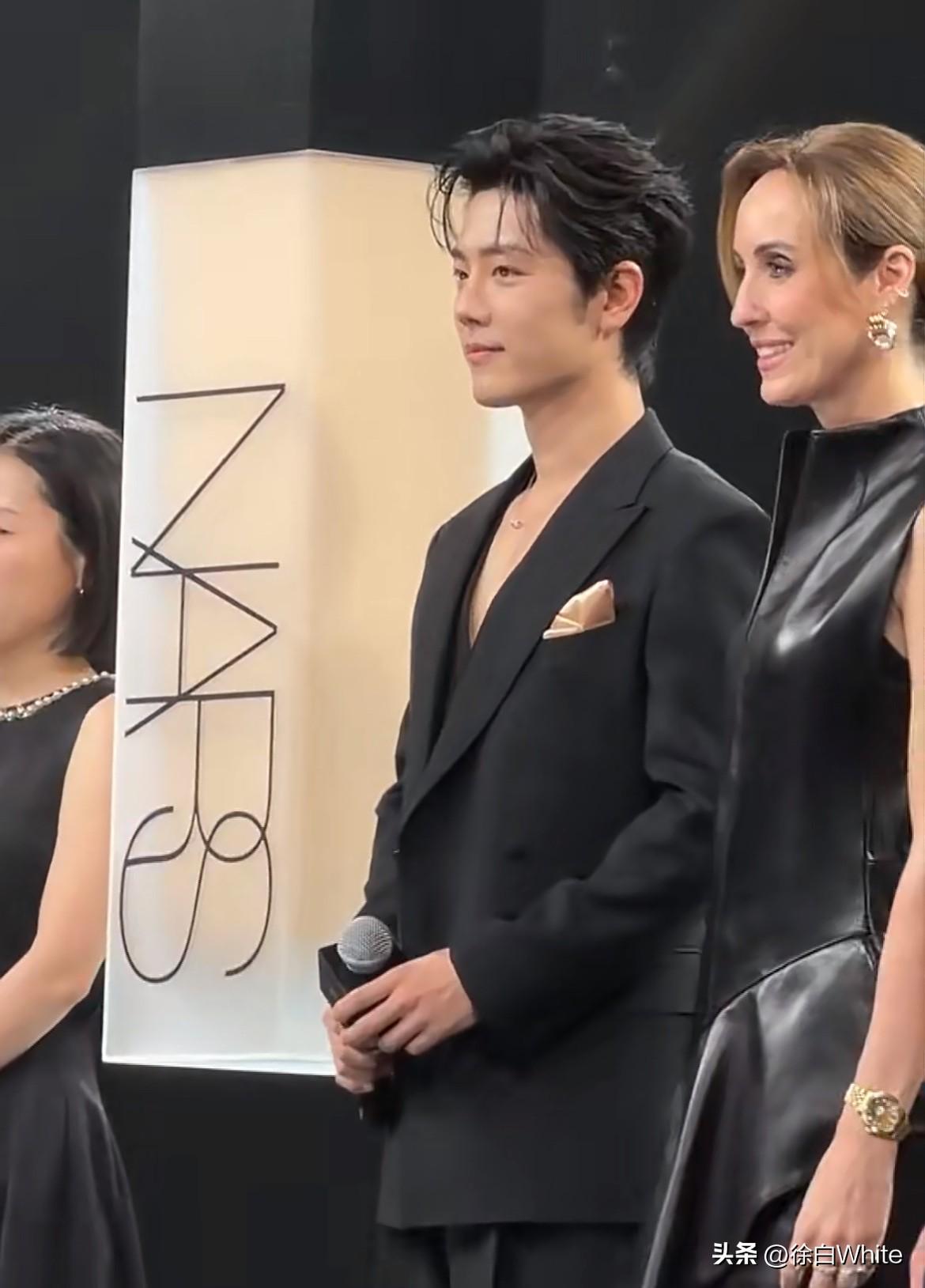 3月20日,肖战nars发布会合影太逗了 看今晚肖战在plus版粉底液旁边止不住的嘴角上扬,本人都觉得离谱的程度,一开始我还以为是远处的背景,后面看到有人隔着肖战站位才发现肖战旁边吊着一瓶plus版的粉底液,想出这点子的绝对是个营销人才! 重点产品突出了,重点全球代言人也突出了! 肖战真的很高,就算身边的女士穿了高跟鞋也比肖战略矮一些,其他人更不必说了! 人群中最亮的仔非肖战莫属。