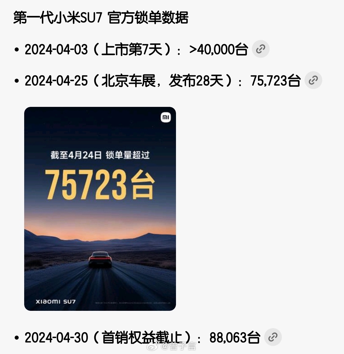 初代小米SU7 七天才锁单四万台。