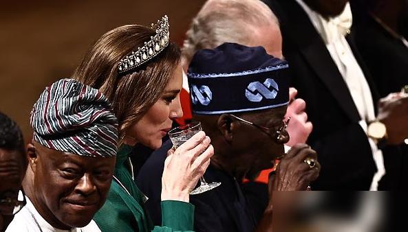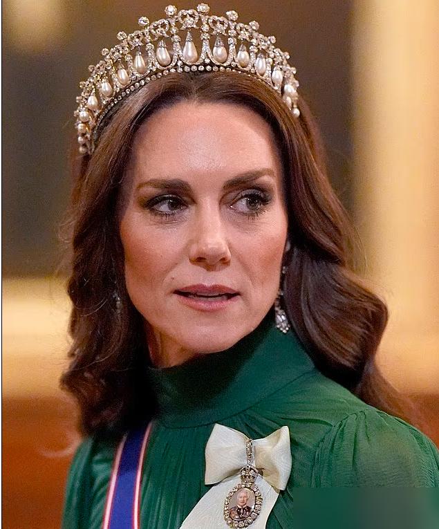 刚过去的3月18日,英国在温莎城堡给尼日利亚总统办国宴。这是尼日利亚领导人近40年来首次对英国事访问,规格拉满。 凯特王妃盛装出席,穿的深绿定制礼服特意呼应尼日利亚国旗。头上戴玛丽皇后的结状头冠,耳朵配已故女王的耳环,全是王室压箱底的珠宝。 这是她2024年抗癌成功后,少有的重大国宴公开亮相。之前有人扯国内搬的是“精修通稿”,可翻遍外媒的专业图和社交平台短视频,没见啥翻车生图。 步态稳健,气色明亮,笑容自然,外媒全夸她是当晚的核心看点。
