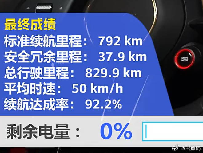 卧槽,真牛逼,标准续航里程跑了 792km,剩余冗余里程还有 37.9km,总里程829.9km。