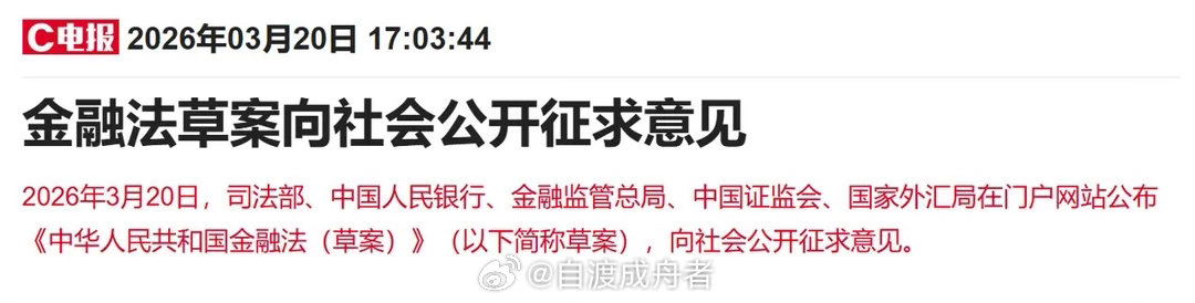 3月20日盘后,司法部、中国人民银行、金融监管总局、中国证监会、国家外汇局公布《中华人民共和国金融法(草案)》,向社会公开征求意见。这是我国金融领域第一部管总的基础性法律,对于加强金融监管、防范金融风险、推动金融高质量发展具有重要意义。
