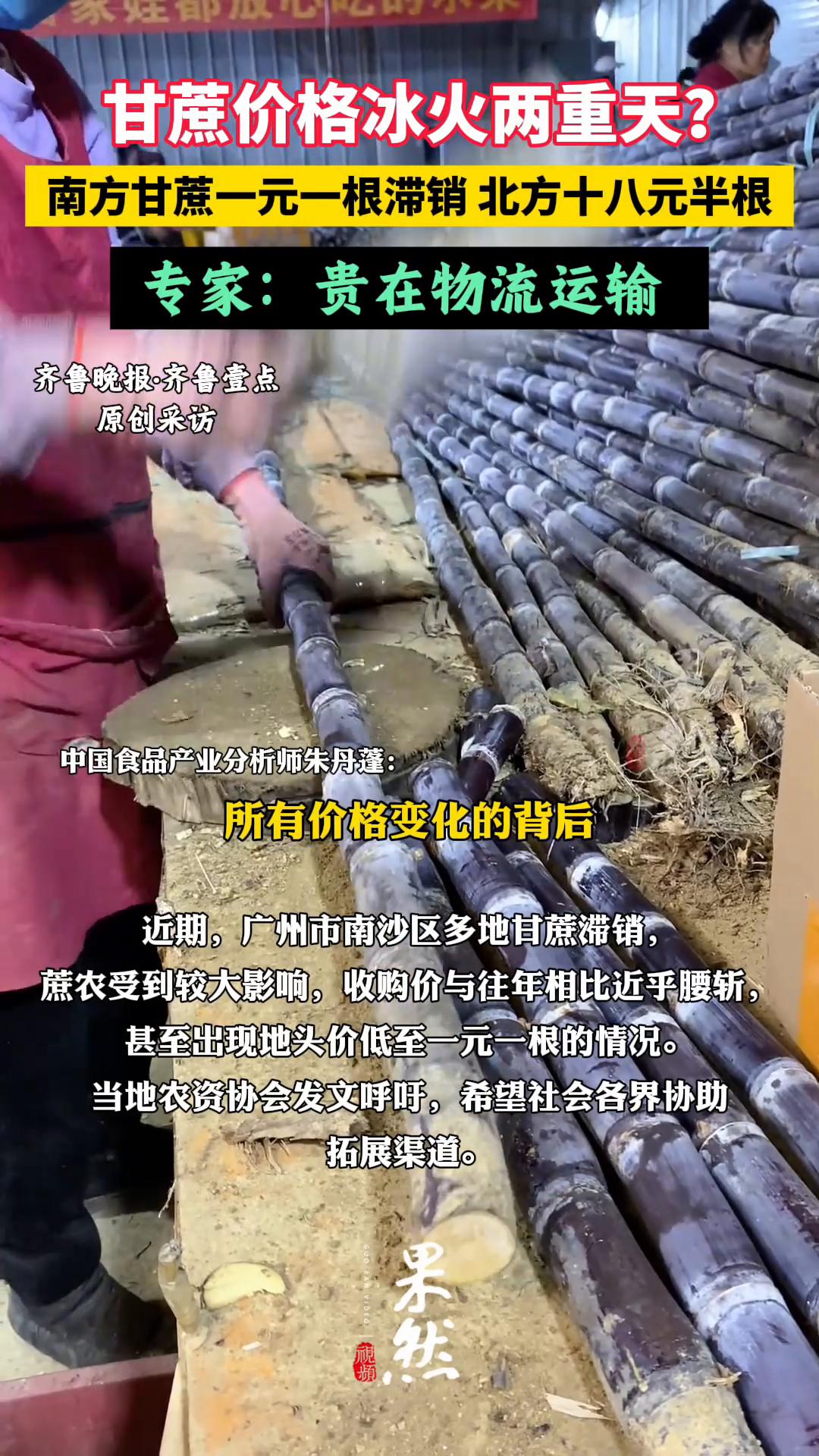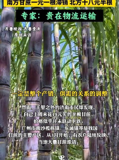 太讽刺!南方甘蔗1元一根没人要,北方18元半根抢着买,差价太扎心 同样是甘蔗,南北市场价差离谱到让人咋舌,堪称现实版农产品荒诞剧,狠狠戳中产销链条的痛点,讽刺感拉满。 广州南沙等甘蔗主产区,今年遭遇大面积滞销,地头价低至1元一根,蔗农看着堆积的甘蔗愁容满面,亏本都难卖出,丰收反倒成了负担。可千里之外的北方城市,半根甘蔗竟卖到18元高价,市民想吃口甘蔗,要花十几倍的价钱,不少人直呼吃不起。 一边是产地低价滞销烂在地里,一边是终端高价供不应求,巨大差价背后,是长途物流、仓储保鲜、层层分销的成本叠加,更是农产品产销对接的脱节。蔗农赚不到钱,消费者买不起,暴利全被中间环节拿走,这般畸形差价,实在令人唏嘘。