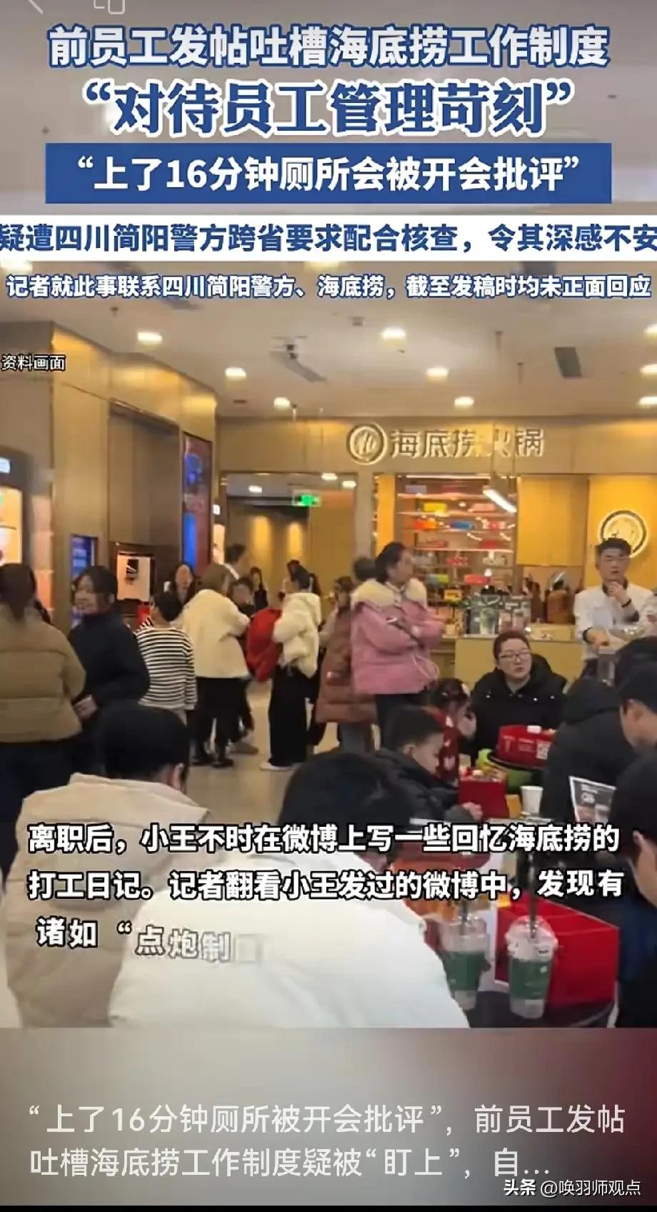 店经理一秒变服务员!海底捞“点炮制度”曝光,跨省约谈前员工引众怒 近日,前员工爆料海底捞内部“点炮制度”:高层巡店时一句话,就能将年薪数十万的店经理直接降为服务员,薪资断崖式下跌。爆料中还提及“迟到罚深蹲20次”“打哈欠抄制度”等严苛规则。一个多月后,该员工疑遭跨省约谈,引发舆论哗然。 专家解读: 企业管理专家指出,“点炮制度”是权力投射的极端体现,将个人意志凌驾于制度之上。用恐惧维系的组织,员工表现出的笑容再标准,也透着凉意。 反思: 企业管理应守住“人性化”底线。当员工连打哈欠都要被惩罚,归属感从何而来?长期高压只会导致人才流失和品牌受损。 历史关联: 从咖啡连锁到互联网巨头,因管理失控翻车的企业不胜枚举。将“效率”凌驾于“人”之上,短期收益背后埋下长期隐患。 结语: 服务的温度来自真心,而非恐惧。品牌再大,丢了人心,就什么都不是。海底捞潜规则 海底捞服务人员 海底捞夜场 海底捞数字化 海底捞案 海底捞小费 海底捞单店经营 海底捞年报 海底捞新业务 海底捞新员工 海底捞门迎 海底捞净利润 海底捞单店广告 海底捞学生局 海底捞店招