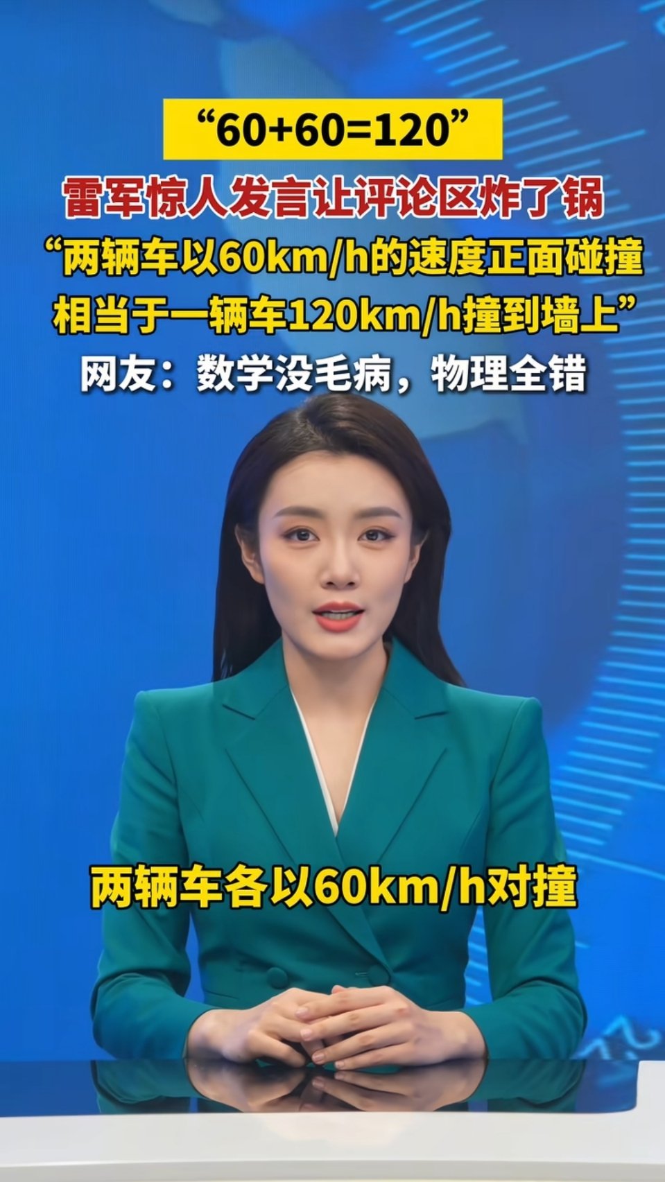 目前热度比较高的2个质疑性话题,一个是雷总说新小米SU7座椅舒适度提升33%,另一个是雷总说2两辆60KM/h速度的车对撞相当于一辆车120KM/h速度撞墙。