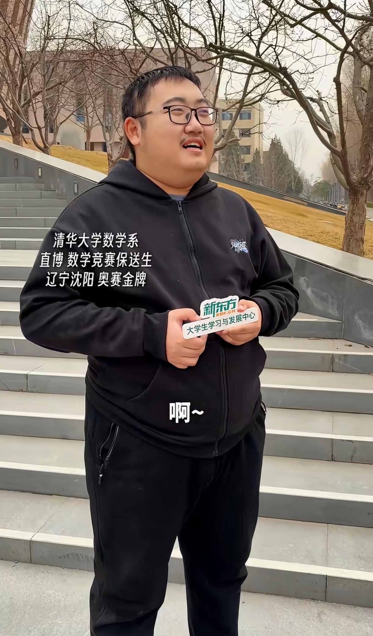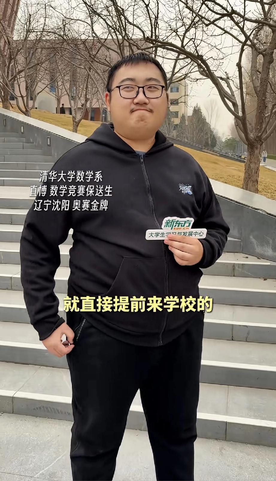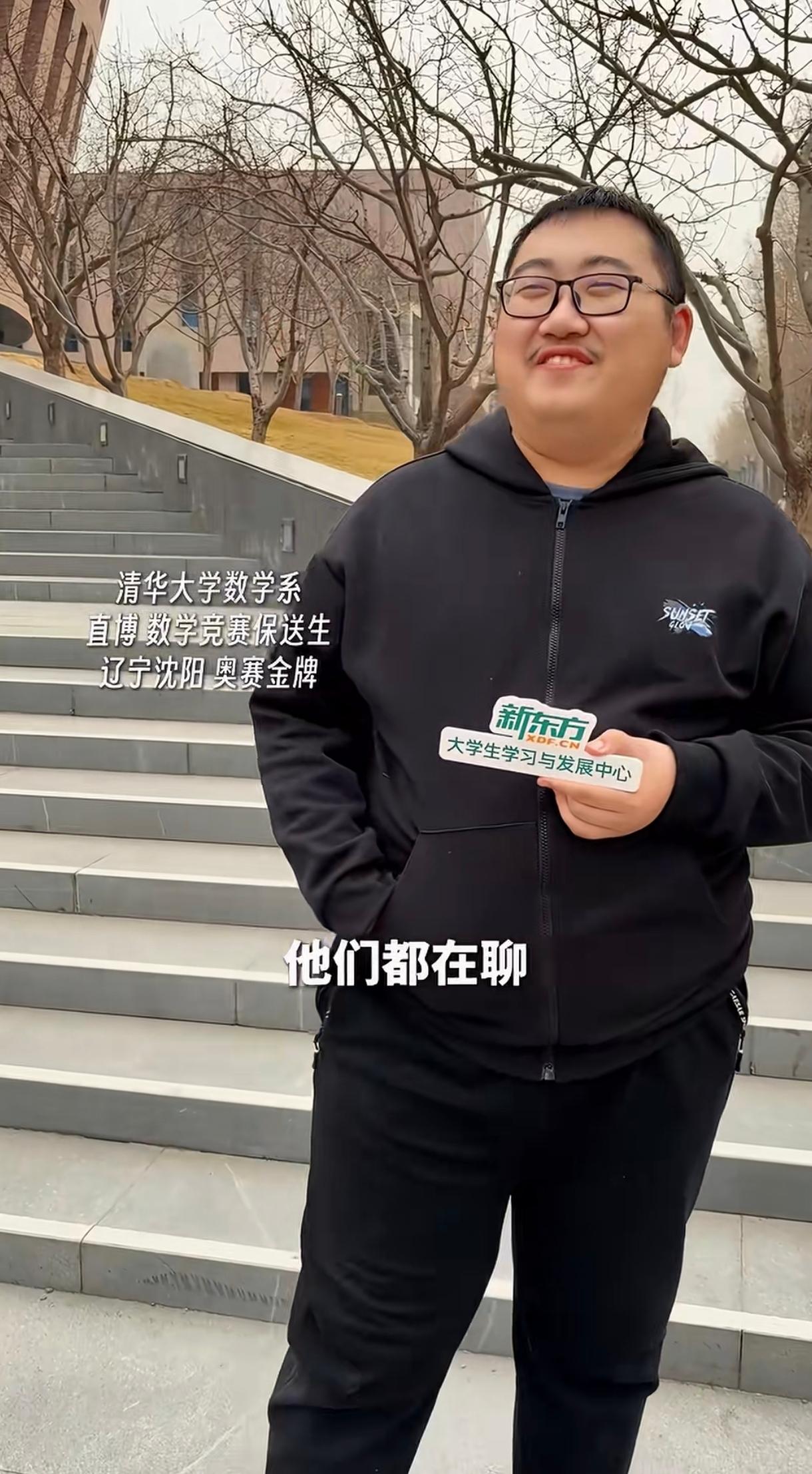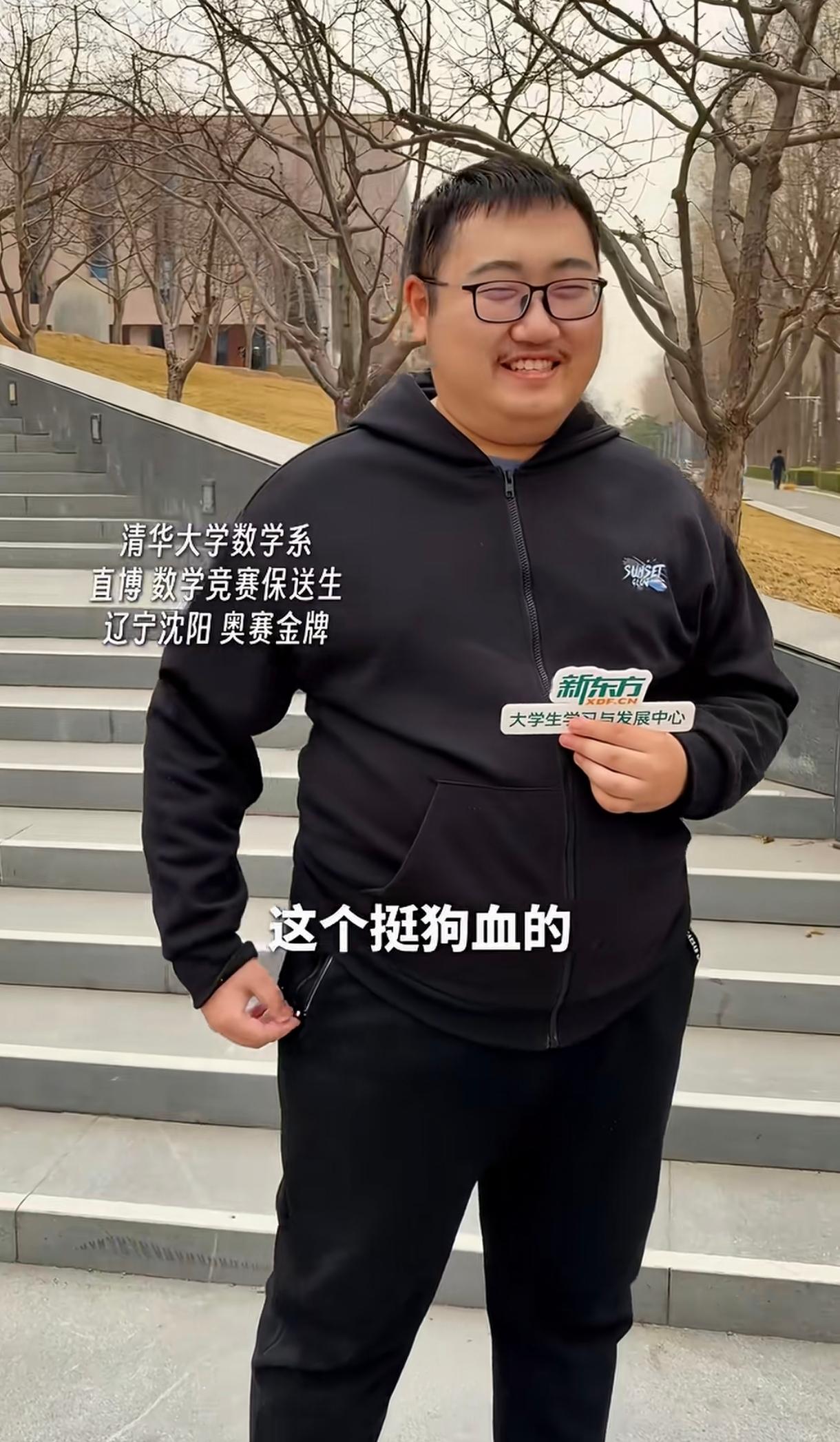 我如果不清楚这位是清华大学数学系的博士生的底细,第一眼看上去,我觉得他像个“傻子”,因为他笑的憨憨的,身材矮胖,头发稀疏又很油,也不会着装打扮,但是实际一聊发现我才是“傻子”。 这个胖胖的男生叫田子昂,辽宁沈阳人,是清华大学数学系、直博、数学竞赛保送生、辽宁沈阳奥赛金牌得主。 他通过清华大学“丘成桐数学科学领军人才培养计划”获得了本硕博八年连读的资格,属于直接保送攻读博士学位,且为辽宁沈阳入选该计划的第一位学子。 那这么一位人人羡慕的天之骄子,有自己的遗憾和烦心事吗? 在他的讲述之下我发现,天才也有烦恼,也有普通人的琐碎人生。 田子昂自述,上中学的时候因为原生家庭父母不和的原因,他曾精神压抑被迫休学了一年。后来他又重新振作,在学业上有了突破,获得了奥赛金牌,让他又有了信心。 但是因为他中学时代一直是在参加数学竞赛,跟同班的同学接触的少了,难得有几个交往的好朋友。更重要的一点是他因为是学校里的数学天才,能够跟他一起讨论学习的同学少之又少,所以学数学学的有点孤独。 天才都是孤独的,这句话一点都不假,因为他的偶像竟然是数学家高斯,欧拉和牛顿。 我看过很多对名校学子的采访,他们有个共同点,不说话时,在人群里不显山不露水,像是最普通的普通人,而且看着还不太聪明的样子。但一开口一表达,却是逻辑缜密,语言精练,不愧是名校学子。