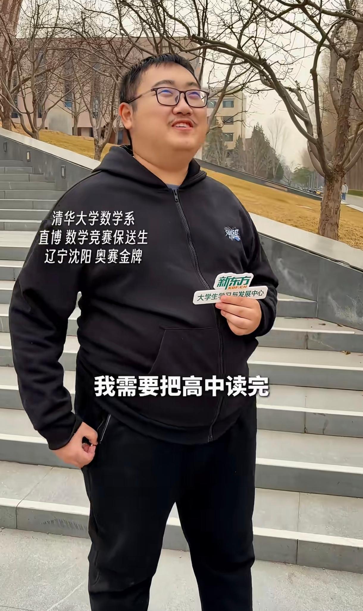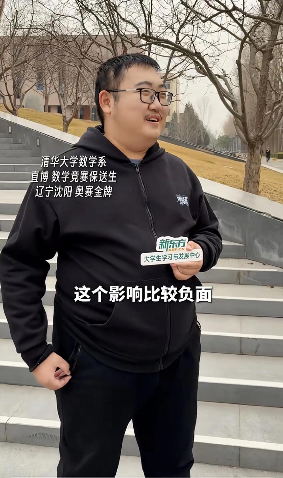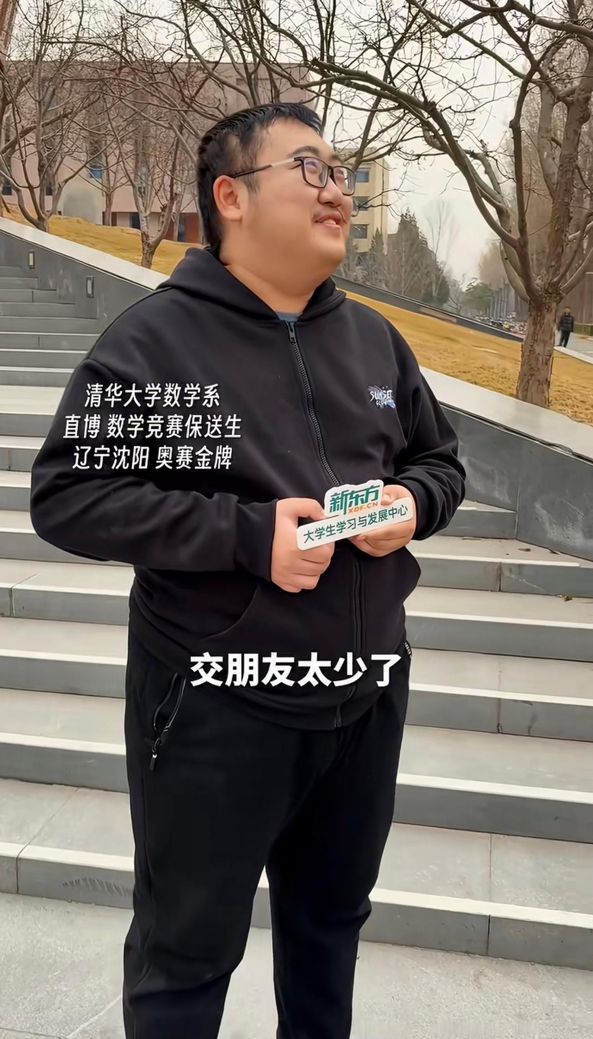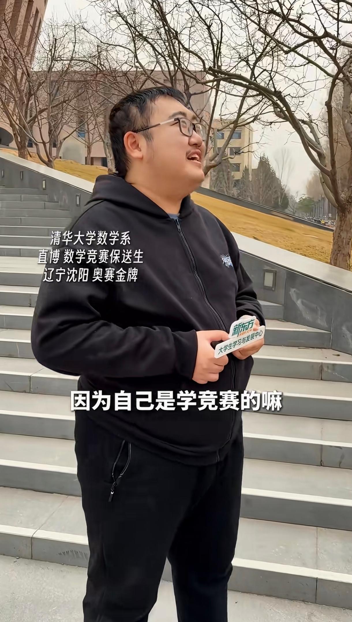 我如果不清楚这位是清华大学数学系的博士生的底细,第一眼看上去,我觉得他像个“傻子”,因为他笑的憨憨的,身材矮胖,头发稀疏又很油,也不会着装打扮,但是实际一聊发现我才是“傻子”。 这个胖胖的男生叫田子昂,辽宁沈阳人,是清华大学数学系、直博、数学竞赛保送生、辽宁沈阳奥赛金牌得主。 他通过清华大学“丘成桐数学科学领军人才培养计划”获得了本硕博八年连读的资格,属于直接保送攻读博士学位,且为辽宁沈阳入选该计划的第一位学子。 那这么一位人人羡慕的天之骄子,有自己的遗憾和烦心事吗? 在他的讲述之下我发现,天才也有烦恼,也有普通人的琐碎人生。 田子昂自述,上中学的时候因为原生家庭父母不和的原因,他曾精神压抑被迫休学了一年。后来他又重新振作,在学业上有了突破,获得了奥赛金牌,让他又有了信心。 但是因为他中学时代一直是在参加数学竞赛,跟同班的同学接触的少了,难得有几个交往的好朋友。更重要的一点是他因为是学校里的数学天才,能够跟他一起讨论学习的同学少之又少,所以学数学学的有点孤独。 天才都是孤独的,这句话一点都不假,因为他的偶像竟然是数学家高斯,欧拉和牛顿。 我看过很多对名校学子的采访,他们有个共同点,不说话时,在人群里不显山不露水,像是最普通的普通人,而且看着还不太聪明的样子。但一开口一表达,却是逻辑缜密,语言精练,不愧是名校学子。