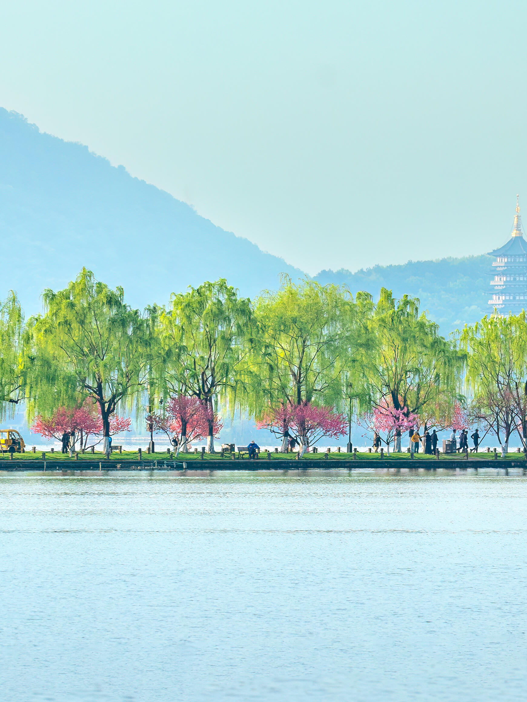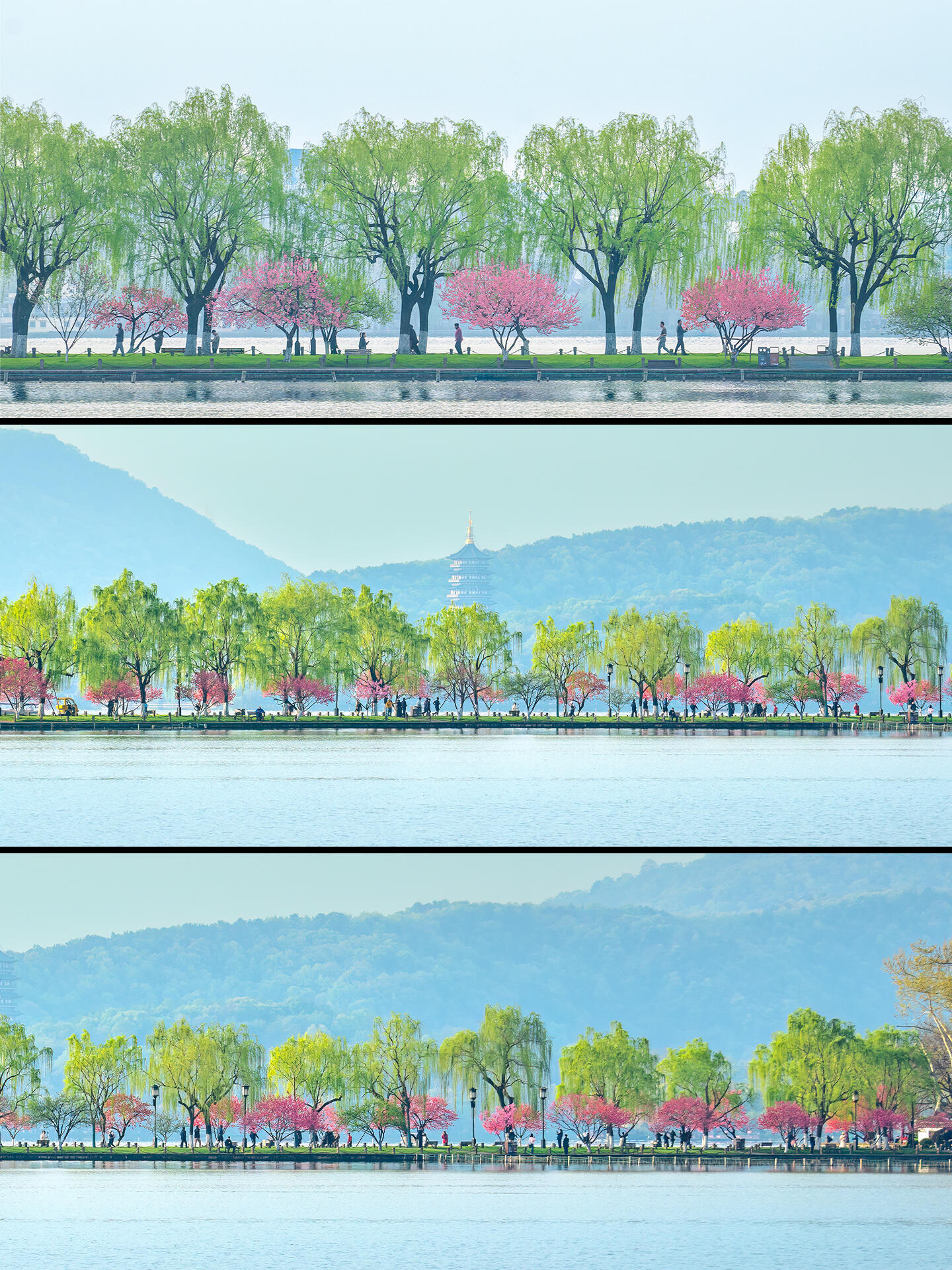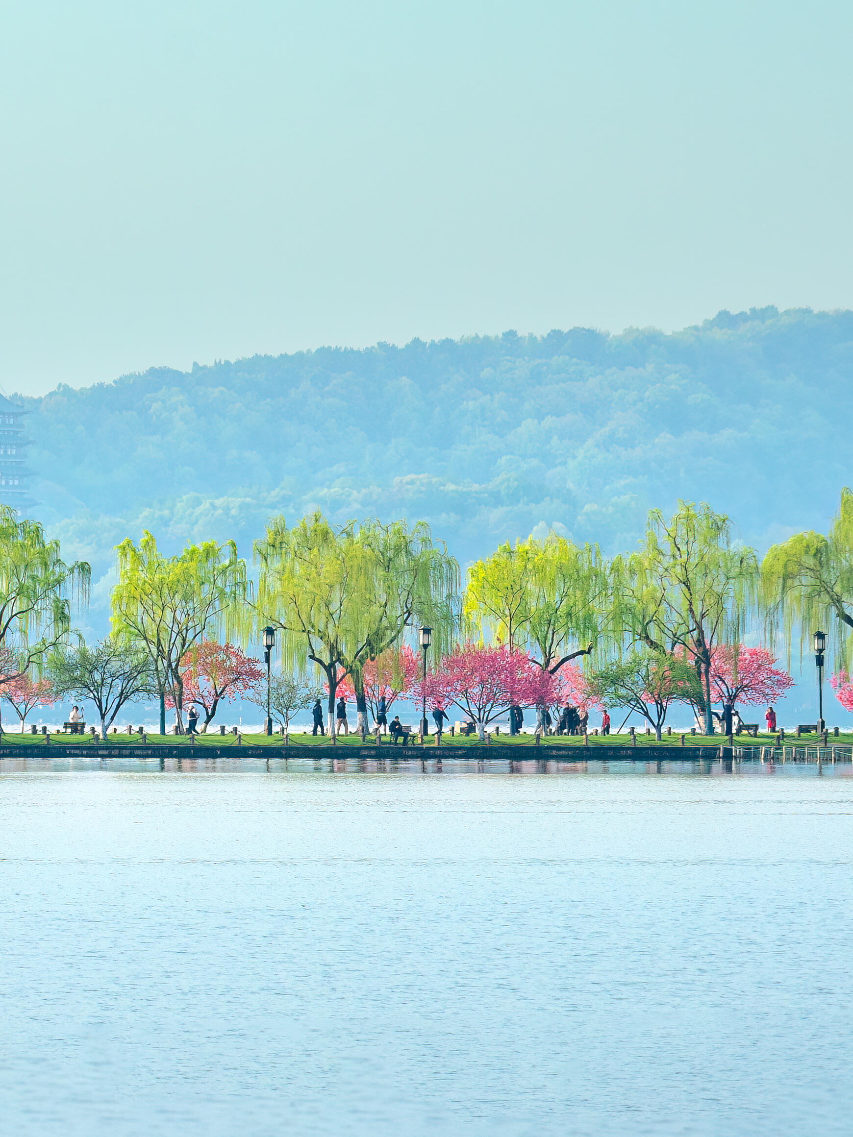 白堤的桃红柳绿具象化了杭州西湖|白堤的桃红柳绿具象化了!!
