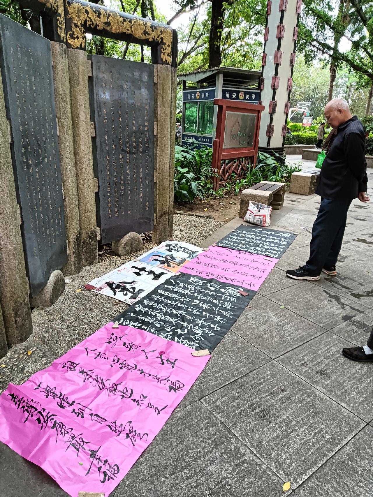 中午经过贵港东湖公园这里有书法行家在练字,近看书迹苍劲有力且内容皆是人生真谛良言