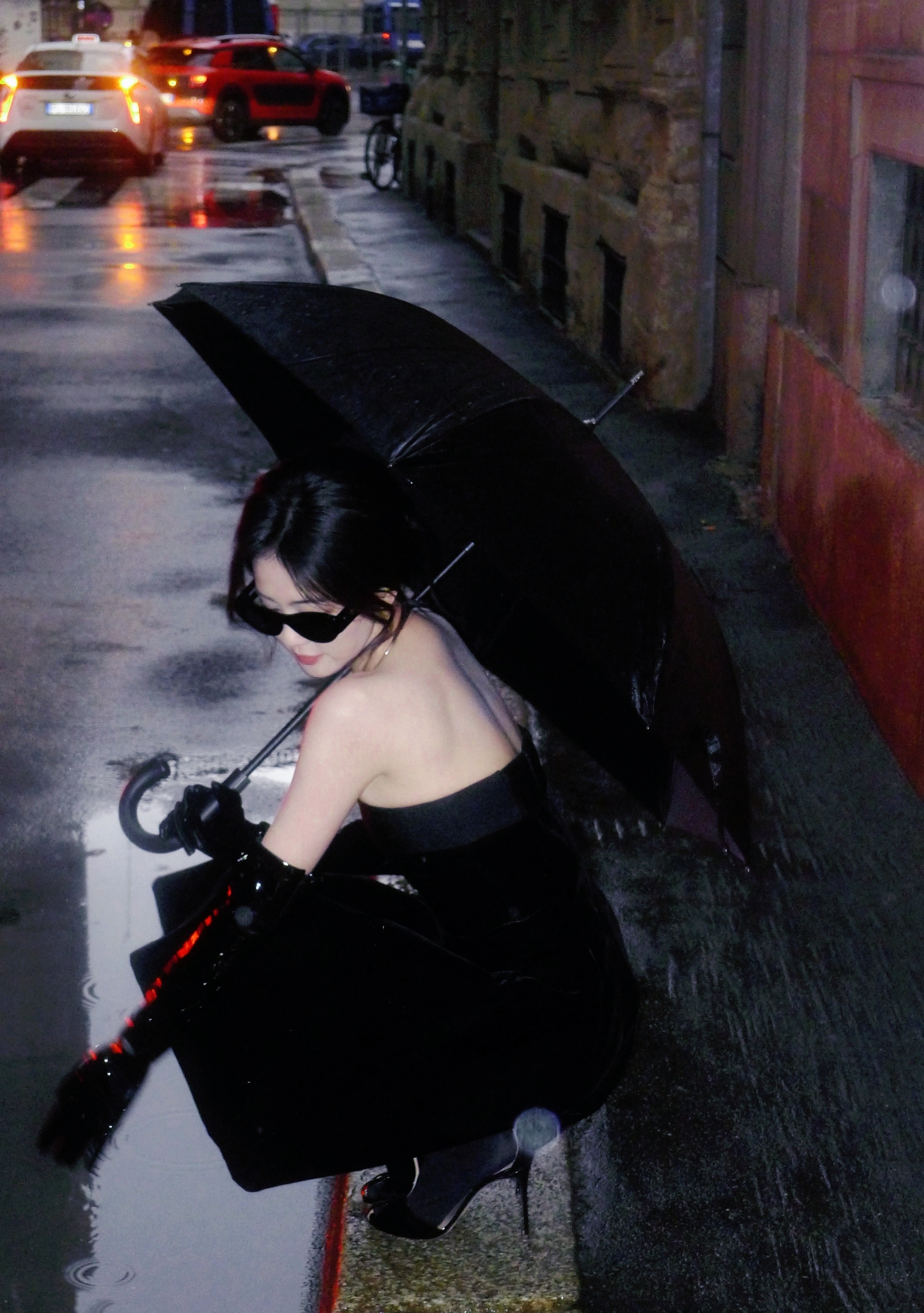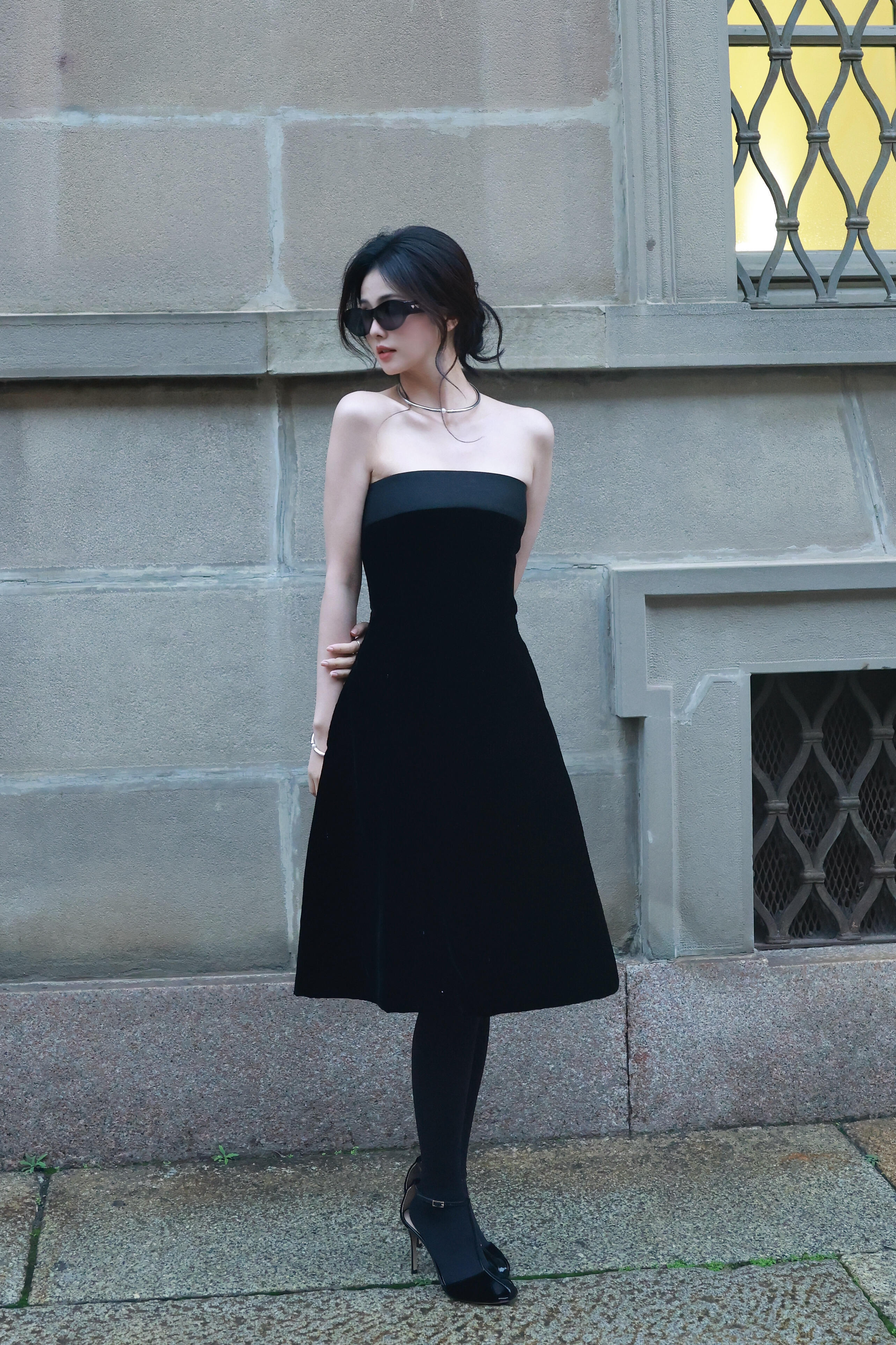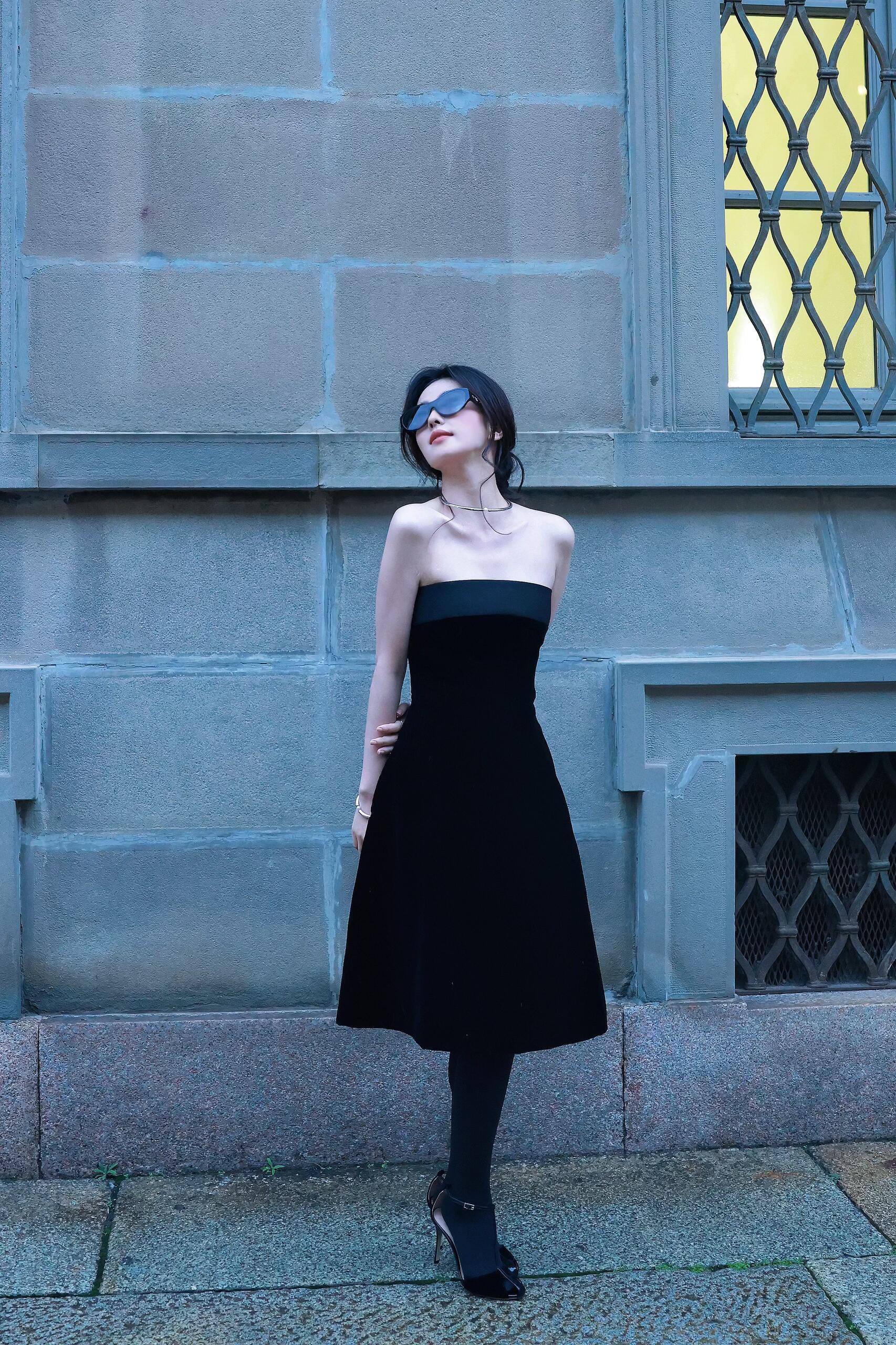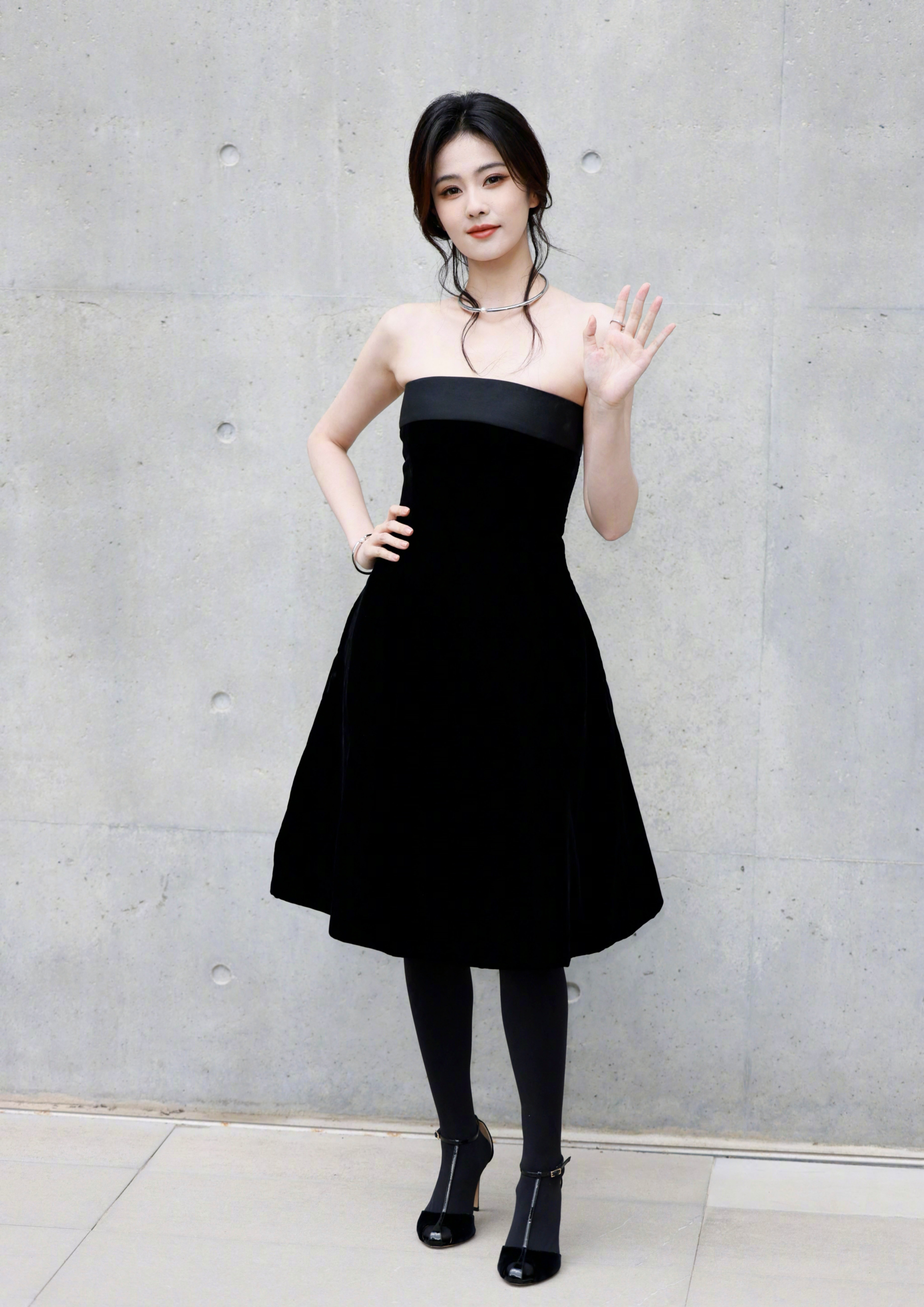 白鹿周边 白鹿黑色抹胸裙 黑色裤袜大长腿 黑色半包细高跟