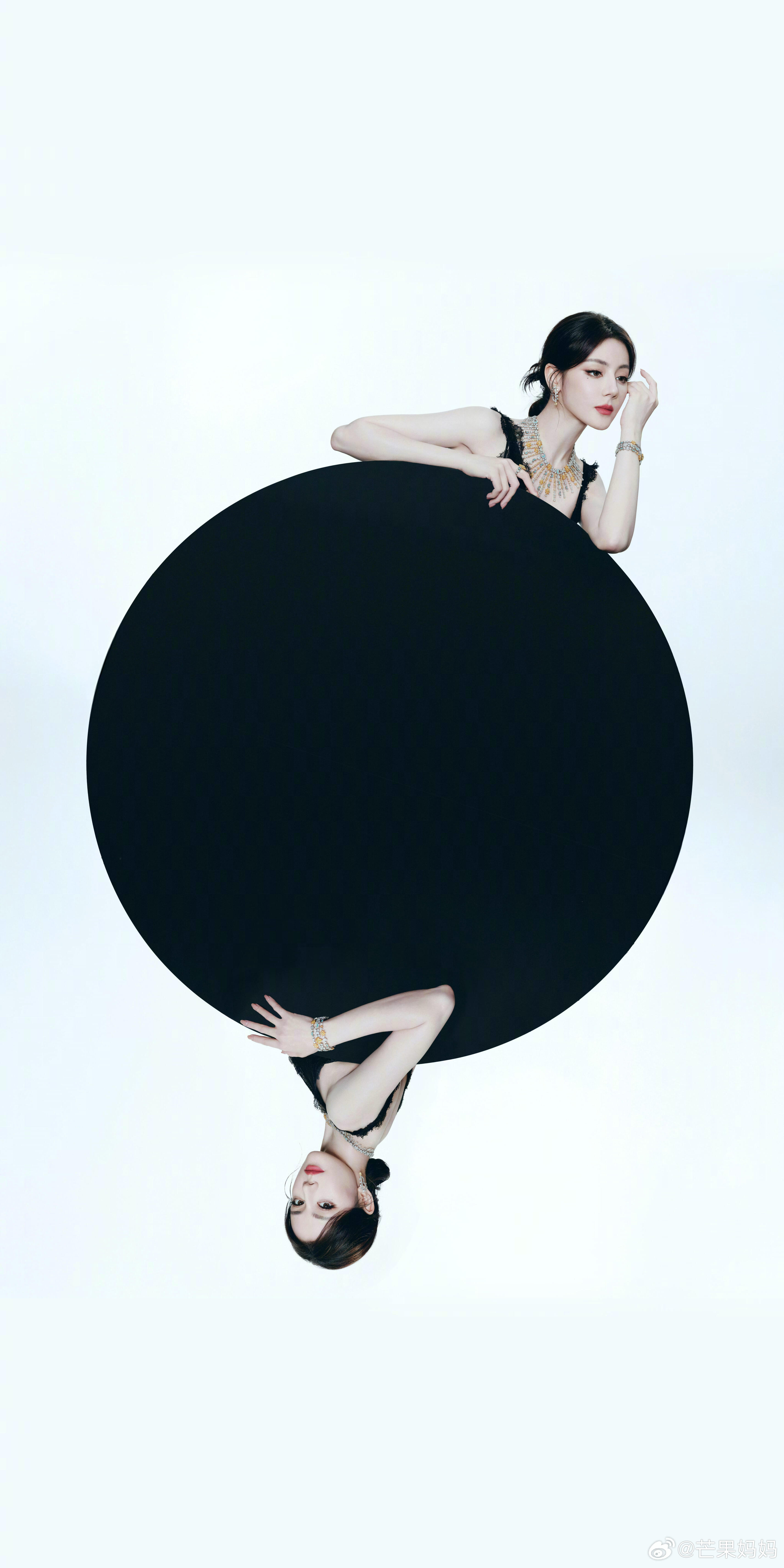 迪丽热巴工作室审美发现迪丽热巴这张黑白大圆盘照,原来是搭配音乐使用的人简直是天才