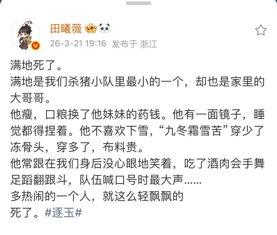 逐玉满地死了田曦薇告别满地 田曦薇告别满地,呜呜呜我们的满地还那么小啊!!!