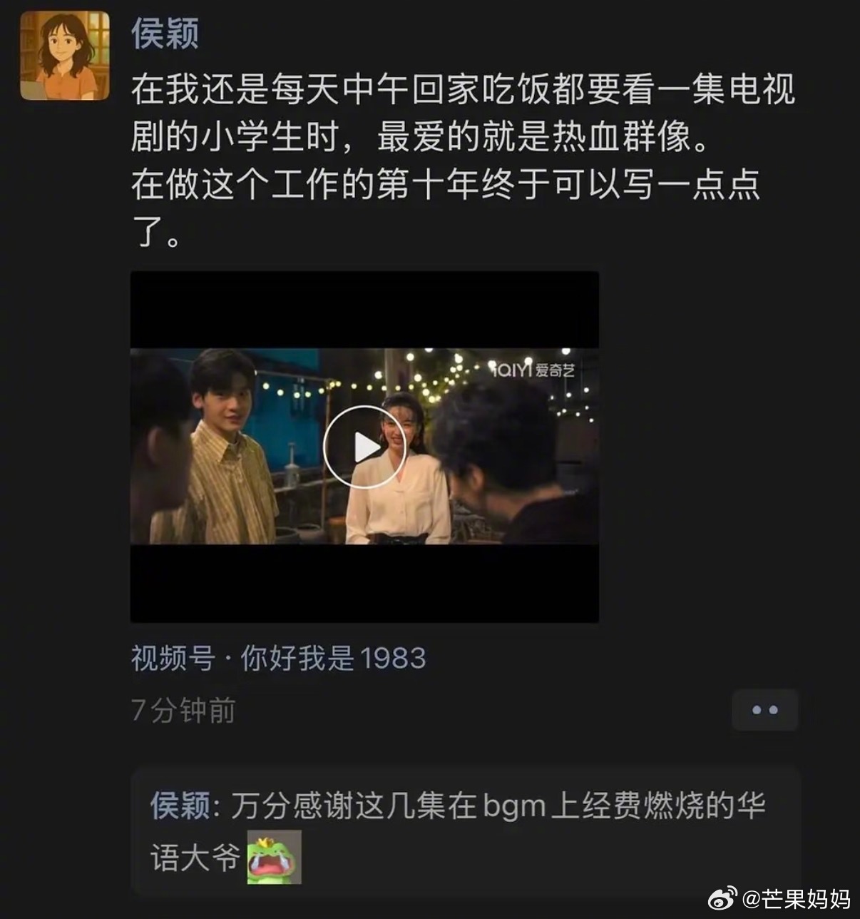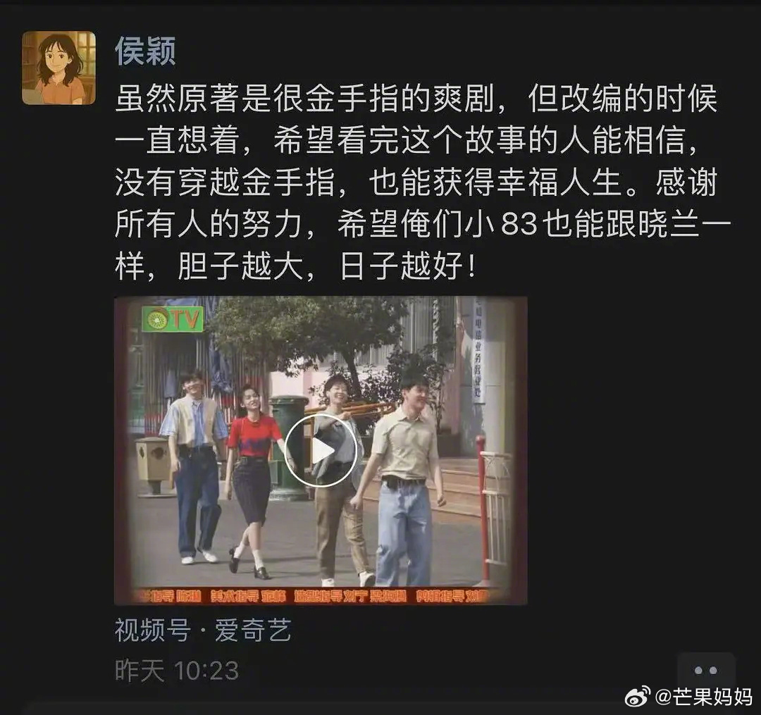 《你好1983》的编剧侯颖老师在朋友圈发文分享改编的初衷: