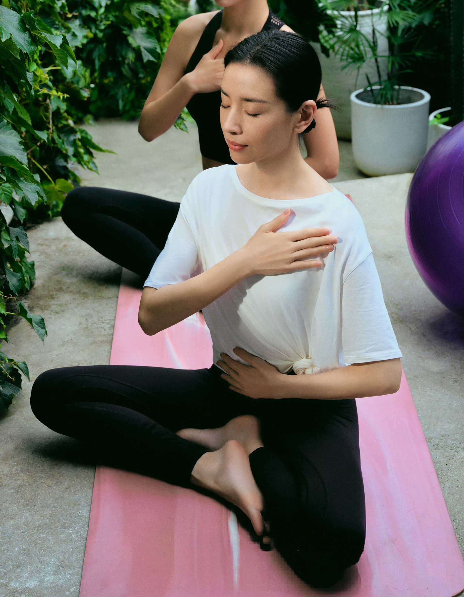 闫妮董洁刘雅瑟同框董洁黑色一字带细高跟