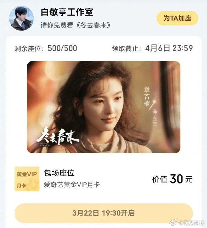 白敬亭包场章若楠新剧白敬亭云包场章若楠新剧白敬亭包场章若楠新剧《冬去春来》,这份