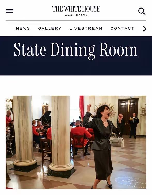 白宫这波操作,把高市早苗的国宴照片挂在官网首页,还配上个“胜利的呐喊”的标题,美国人看着觉得新鲜——日本首相原来也能这么“放得开”,玩得开心就好。 可日本网友不买账。有人说,全世界都在盯着“百年未见之危机”,她倒好,在国宴上笑得一脸轻松,看着像跟特朗普互相搀扶的老头老太太,哪有半点“铁娘子”的样子?之前还盼着她是“日本的撒切尔”,结果呢,活脱脱成了美国的“啦啦队女王”。 说到底,高市打的算盘很清楚——跟美国绑成“情侣关系”,凡事往前凑,觉得这样不吃亏。可外交哪是谈恋爱?撒切尔当年靠的是强硬底气,不是围着对方转。高市这波“示好”,在国际上看,更像没找准自己的位置。 美国人觉得她“真实”,是因为符合他们的期待;日本人觉得她“贬低日本”,是因为没看到该有的立场。就像两个人跳舞,一个使劲往前贴,一个乐得往后带,旁观者看得明白,这舞步早就失衡了。 其实哪有什么“情侣关系”?国与国之间,靠的是实力对等,不是单方面讨好。高市以为紧跟美国就能站稳脚跟,却忘了,真正的尊重,从来不是凑出来的,是自己挣来的。这张被白宫捧为“胜利”的照片,在不少人眼里,更像一面镜子,照出了外交里的尴尬——太想融进别人的舞步,反而忘了自己该怎么迈步。
