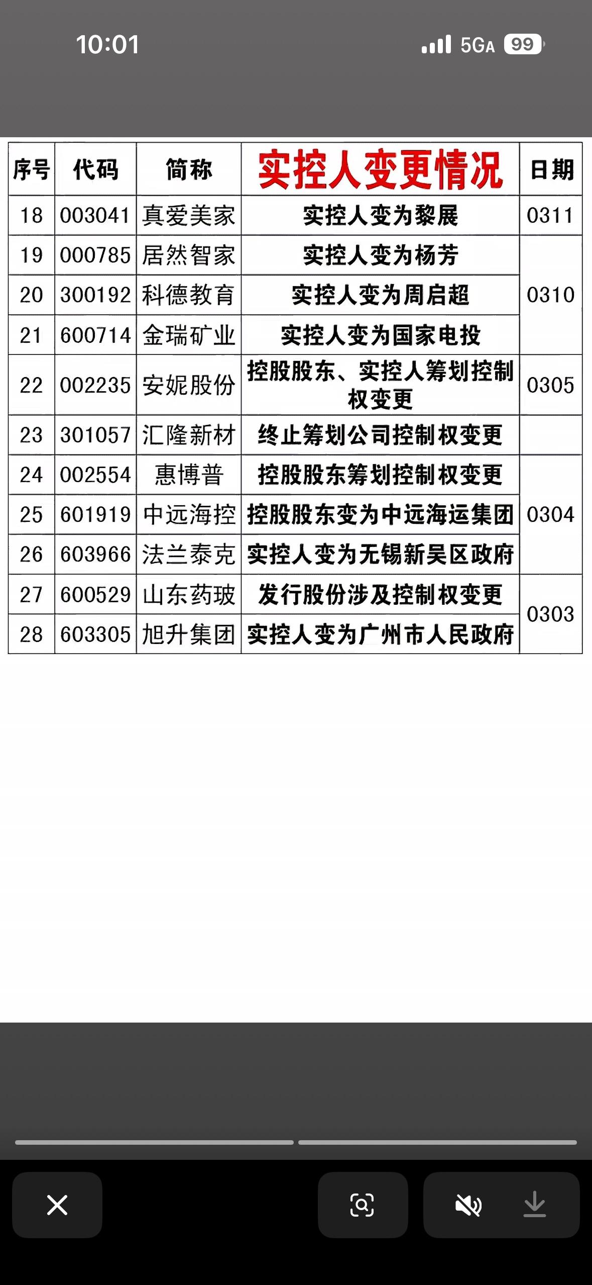 近期实控人变更公司列表(3月1日-3月21日)上市公司一览表 最近在研究3月1日到3月21日实控人变更的公司。像ST花王,实控人从肖国强变成了肖姣君,这背后或许藏着家族内部的权力交接。还有ST爱迪尔,实控人从苏日明变成了狄爱玲,这一变动可能会给公司带来新的发展方向。 实控人变更往往意味着公司战略、经营方向的改变。对于投资者来说,这是机遇也是挑战。新实控人可能会带来新资源、新思路,但也可能面临磨合问题。关注这些公司,说不定能发现潜在的投资机会呢。