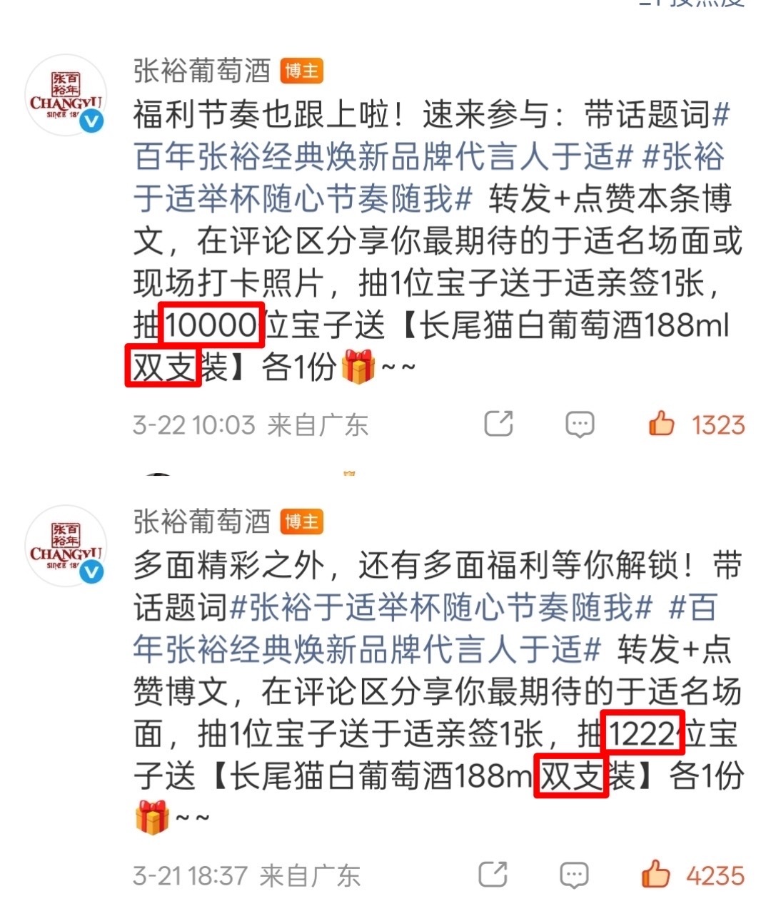 第一次见直接抽两万份奖品的商家!于适新代言张裕葡萄酒,这也太给力了吧🎉