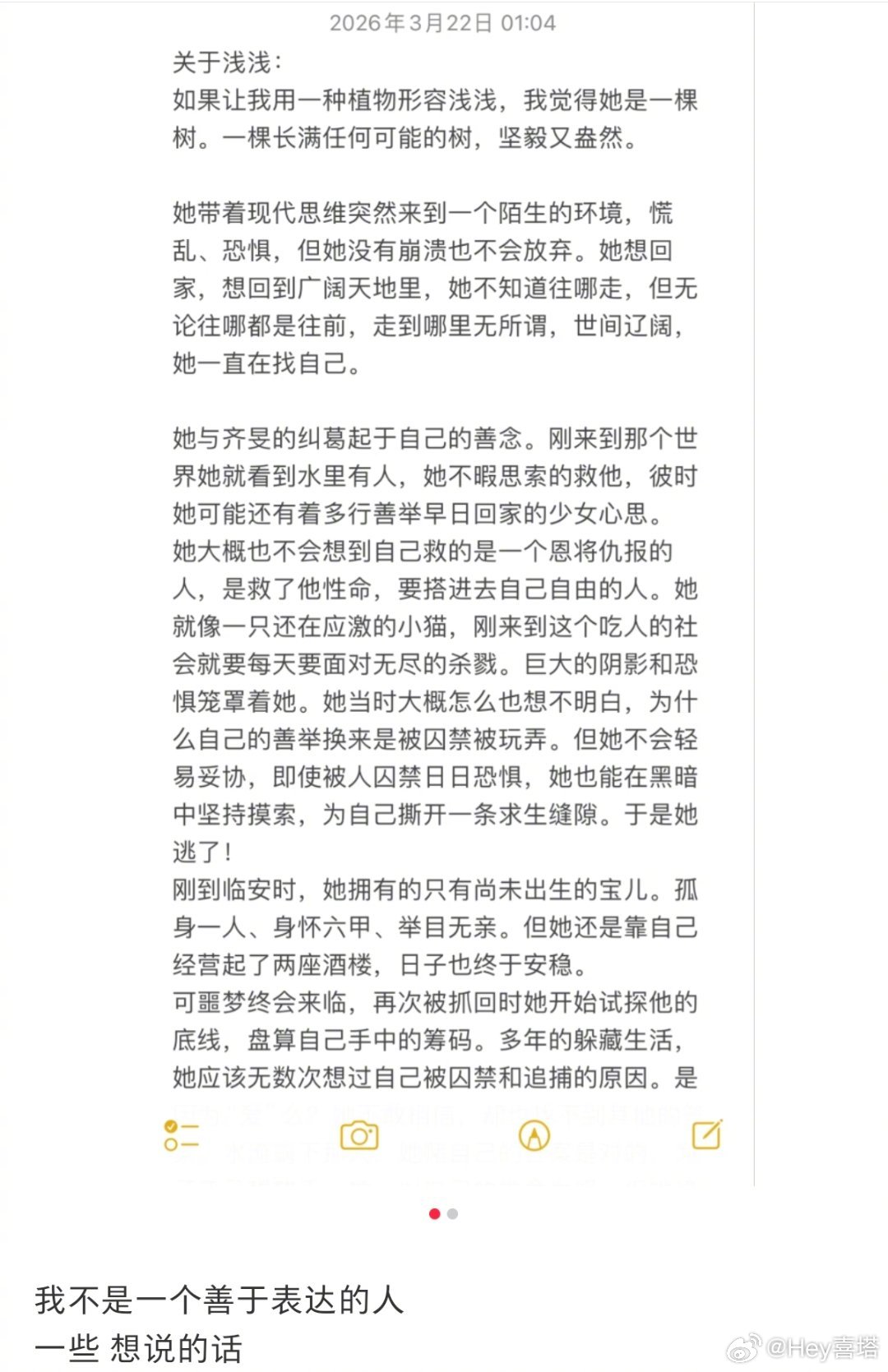 有点怜爱孔雪儿了,这一段高光戏份如果有放出来真的会很好看。没有人会比演员更爱自己的角色,所以她会在深夜发长文说浅浅是一颗“长满任何可能的树”,好细腻又温柔的语言。孔雪儿你真的把浅浅塑造的很好,浅浅是坚强的人孔雪儿也是。