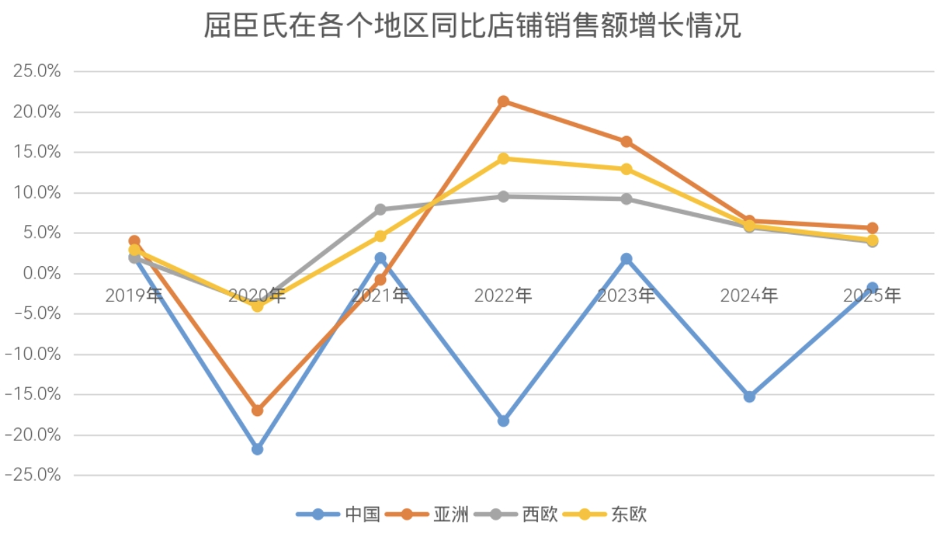 值得注意的是,尽管西欧与东欧的同店销售增速近年有所放缓,但亚洲市场同店销售增长从2024年的6.5%微降至5.6%,仍高于疫情前2019年的4.0%,显示逐步回归常态增长。