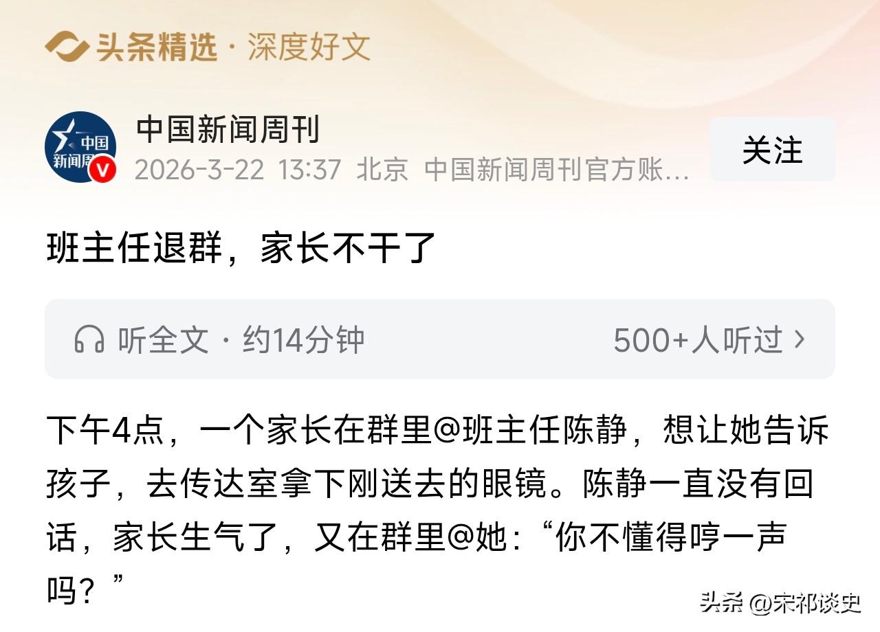 班主任集体退群,家长慌了! 中国新闻周刊报道,班主任陈静因感冒开会未及时回复家长消息遭指责,此事引爆辽宁葫芦岛班主任退出家长群试点的热议,教师普遍支持减负,家长则强烈反对,暴露家校沟通深层矛盾。 家长群已严重异化:教师沦为24小时在线客服,每日耗费大量时间处理琐事、打卡任务,身心俱疲;家长则深陷群消息焦虑,担心退群后信息滞后、沟通不畅,部分学校退群后反而衍生多个群组,加剧负担。 争议核心是家校权责边界模糊:一线教师需应对琐事与行政任务,难以专注教学;家长依赖即时沟通,对学校信任不足。 不同地区教育差异大,城乡家校沟通规则、成绩发布规范各不相同,简单“一刀切”退群难以解决问题。 专家认为,班级群是沟通工具而非责任转嫁渠道,健康家校共育应学校主抓教学、家长负责养育,减少非必要打卡,明确沟通规则,用技术工具优化效率,才能让家校关系回归理性。