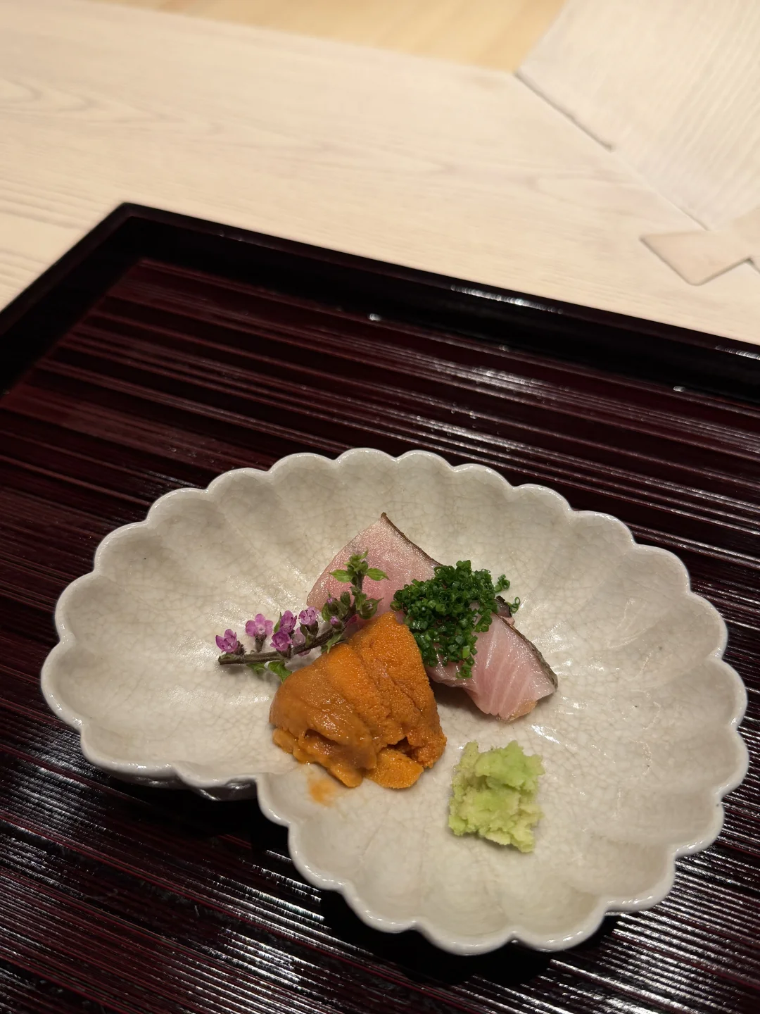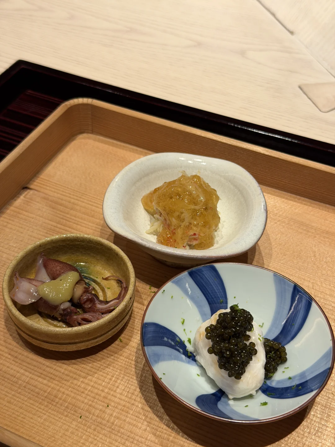 前阵子去试了下据说接下来一个月都订满的东山·割烹寿司 之前就刷到过别人发的这家店的食材图 看着都超有食欲就被种草了 于是满怀期待的来打卡了这家omakase 餐厅位于南山深圳湾的后海汇 与晴空和TJ天妇罗是同一公司旗下的 门口的木架走廊还蛮好看的 这家铺面我已经见证了三轮更新换代 不知道这家能存活多久 - 🍣菜品: 虽然这次的食材和我被种草的食材不太一样 不过也都蛮新鲜的 酒肴还不错 荧光鱿鱼、鱼子酱白子和红毛蟹都是我喜欢的 后面寿司没有太多记忆点 -