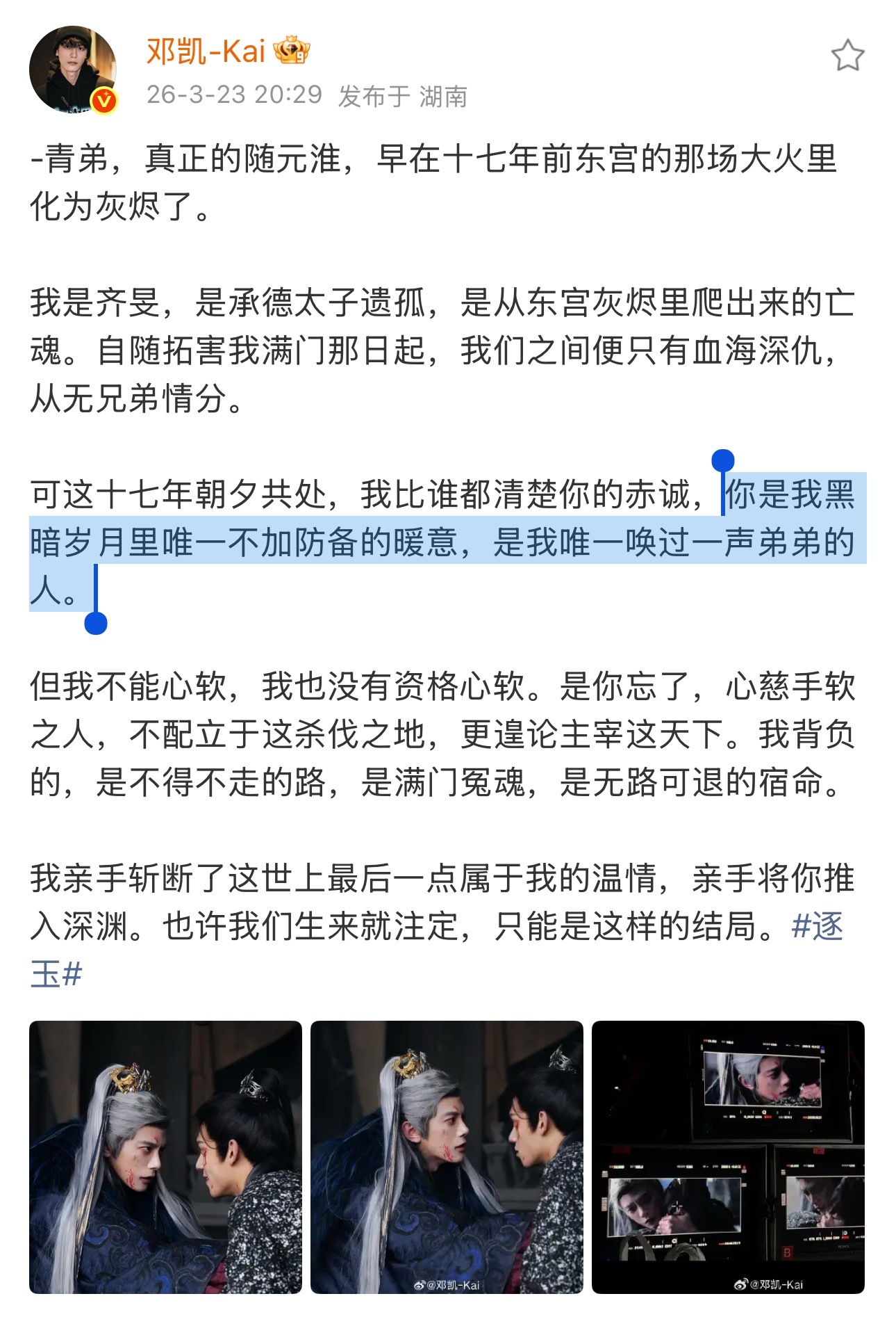 邓凯这篇告别随元青的作文到底谁写的?“是我唯一唤过一声弟弟的人。”“你是我黑暗岁月里唯一不加防备的暖意。”这样形容真的对吗真的有人在嗑这对伪骨科吗🙉 跟孔雪儿三搭我就原谅你