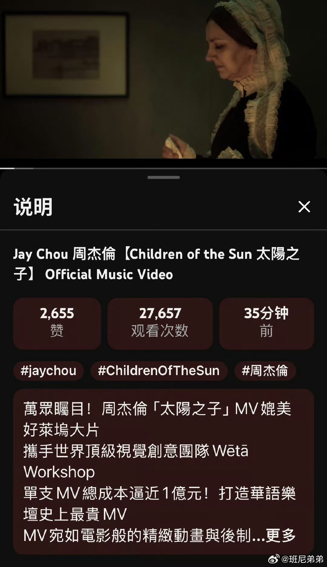 周杰伦太阳之子MV 网友热议MV大手笔制作,却吐槽现场演唱状态不稳,期待视觉与唱