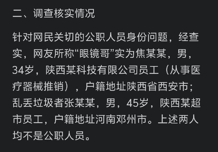 秦岭子午峪乱扔垃圾后续来了,和网传的雁塔法院没有任何关系,之前有人张冠李戴搞错他们的单位了。 事情发生在上周末,在秦岭子午峪,有人不尊重志愿者的劳动果,当着捡拾垃圾志愿者的面丢垃圾,言语间也很不客气,最终导致了双方之间的冲突。志愿者气不过,事后把冲突的视频发到网上。有人看到视频后不知道是认错人还是别有用心,称其中一人是政法系统的工作人员。 眼看视频越闹越大,被波及的西安雁塔法院回应:不是自己法院的人!志愿者目前也删除了冲突的视频,有些人真是看热闹不嫌事大,出了事往公职人员身上扯,其实想想也知道这种可能性太小了。现在两人的身份也已经查明了,并非网传的公职人员,也算给关心此事的网友们一个交代了。