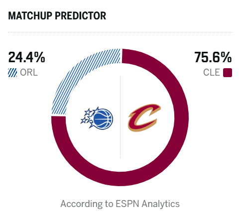 ESPN预测明日比赛:骑士胜率75.6%,魔术胜率24.4%