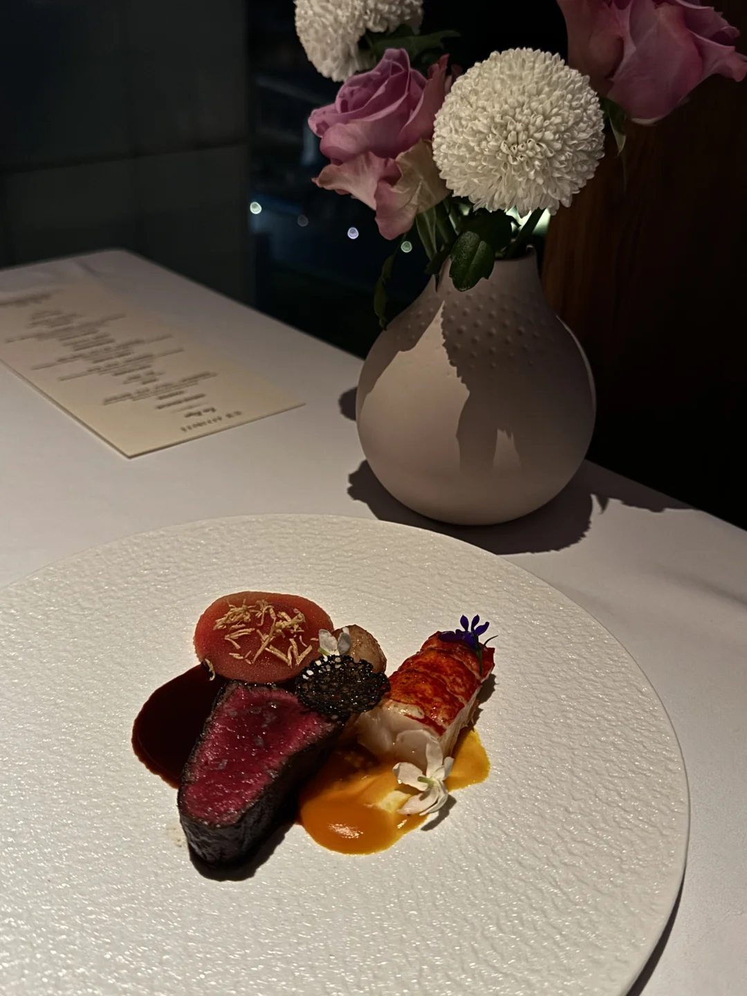 闽东黄鱼、烤羔羊、M9菲力牛排和蓝龙虾连着上