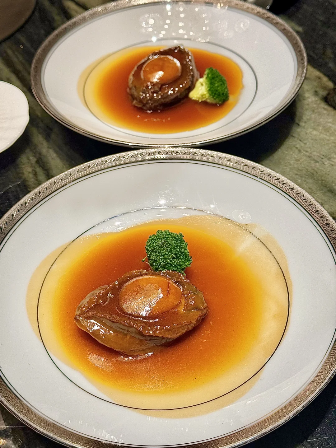 主菜推jian【蚝皇焗两头鲜鲍】,鲍鱼肉质厚实弹牙,蚝皇酱汁浓郁入味,一口下去超满足。