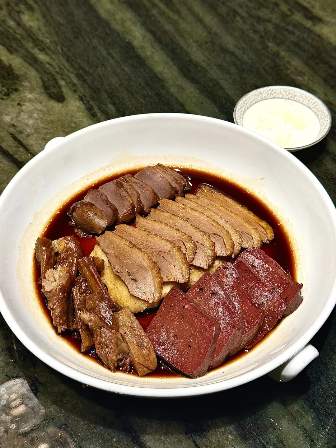 🦢卤水拼盘:潮汕卤味代表👍🏻卤鹅肉质紧实,蘸蒜泥醋超地道!