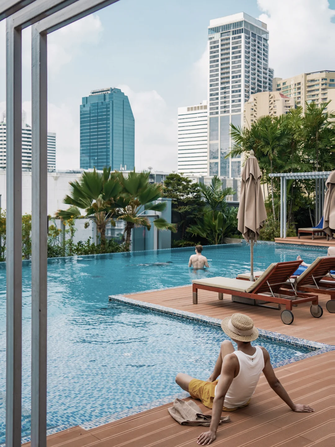 🔹位置就在素坤逸,5分钟就到Terminal21,10分钟到Emsphere,最主要的是顶楼入夜后的夜景Bar,每天逛累回去小酌一杯真的很Chill~