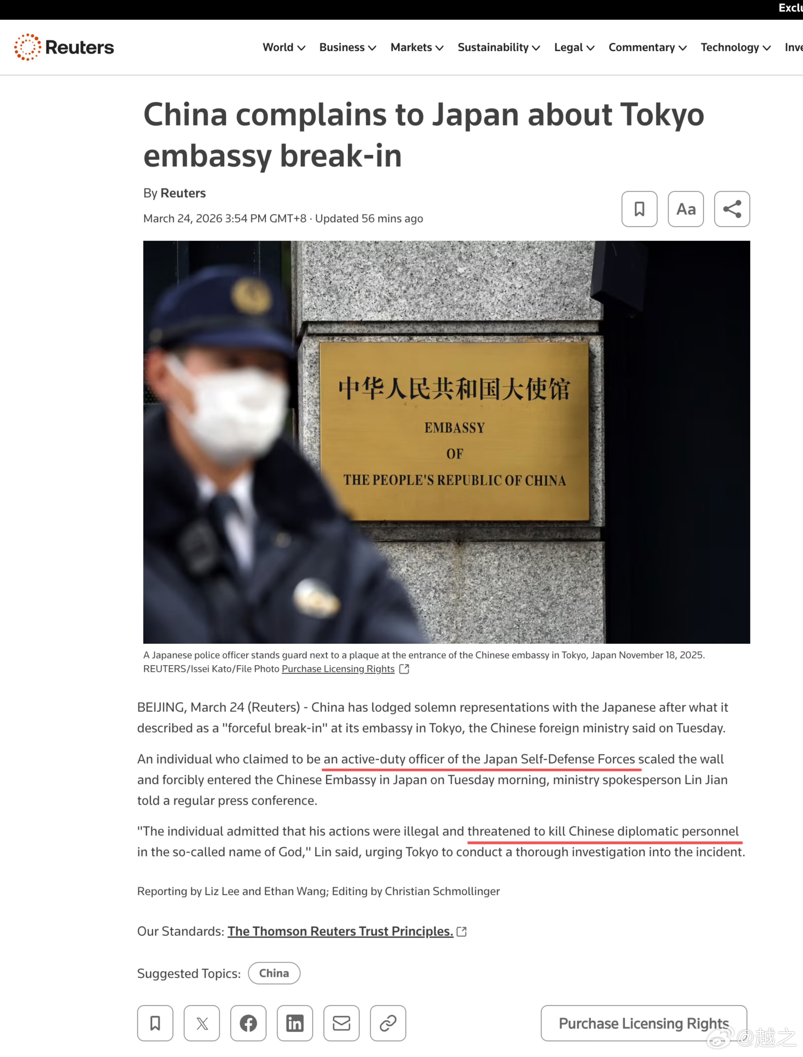 这个当代手持利刃闯入中国驻日大使馆的日本鬼子叫做村田晃大,23岁,是个三等陆尉,驻扎在宫崎县。这么年轻当少尉基本上应该是去年防卫大学毕业的。从这中间就可以看出,日本现在在军队中进行的什么教育。是不是现在学校里要开始用石头砸福建舰了。