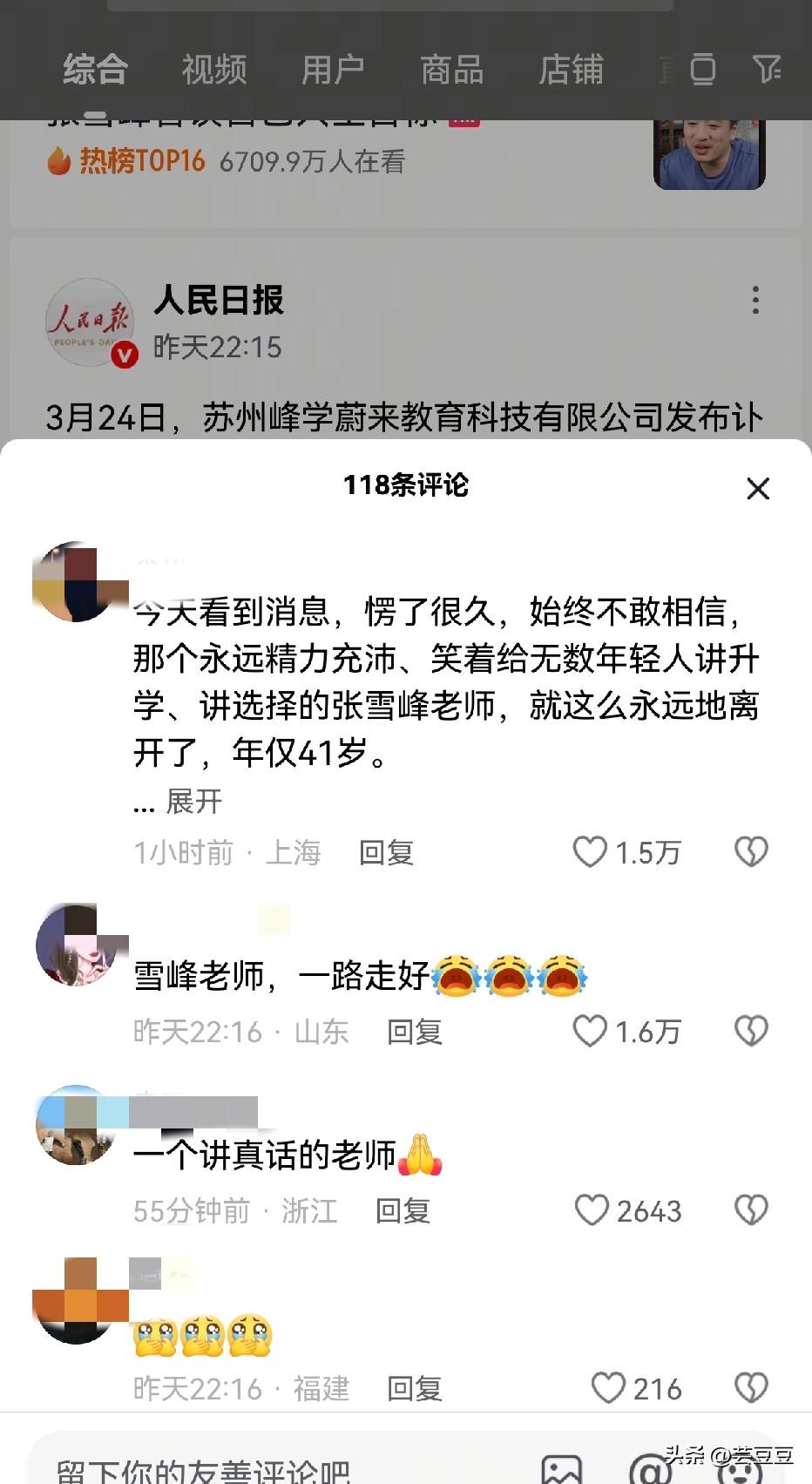 一觉醒来,全网都在悼念张雪峰! 太突然太年轻太可惜了! 他消息一出,微博、抖音、B站瞬间被黑白头像与悼念刷屏,千万学子、家长、网友集体破防,那个陪无数人熬过考研夜、讲透升学路、敢说真话的东北男人,真的走了。 网友留言看得人鼻酸: “感谢张老师,帮我选对专业,改变了我的人生。” “当年考研崩溃,是你的直播撑我到天亮。” “他是真正为普通人说话的教育者,接地气、有良心。” 全网悼念的,不只是一个网红,更是一种精神 他的离世,戳中了太多人的痛点: 为梦想拼命的普通人,谁不是在透支身体? 教育信息差、阶层固化,他用一己之力撕开一道口子。 敢说真话、接地气、有温度的人,太稀缺了。 刘维发文悼念:“谢谢您在火星情报局的照顾”;教育圈同行惋惜“行业失去一位务实标杆”;更多普通人在评论区写下“一路走好”,把他的视频再刷一遍。 他走了,但他的光还在! 生命无常,健康无价。 愿我们都记住:好好活着,比什么都重要。